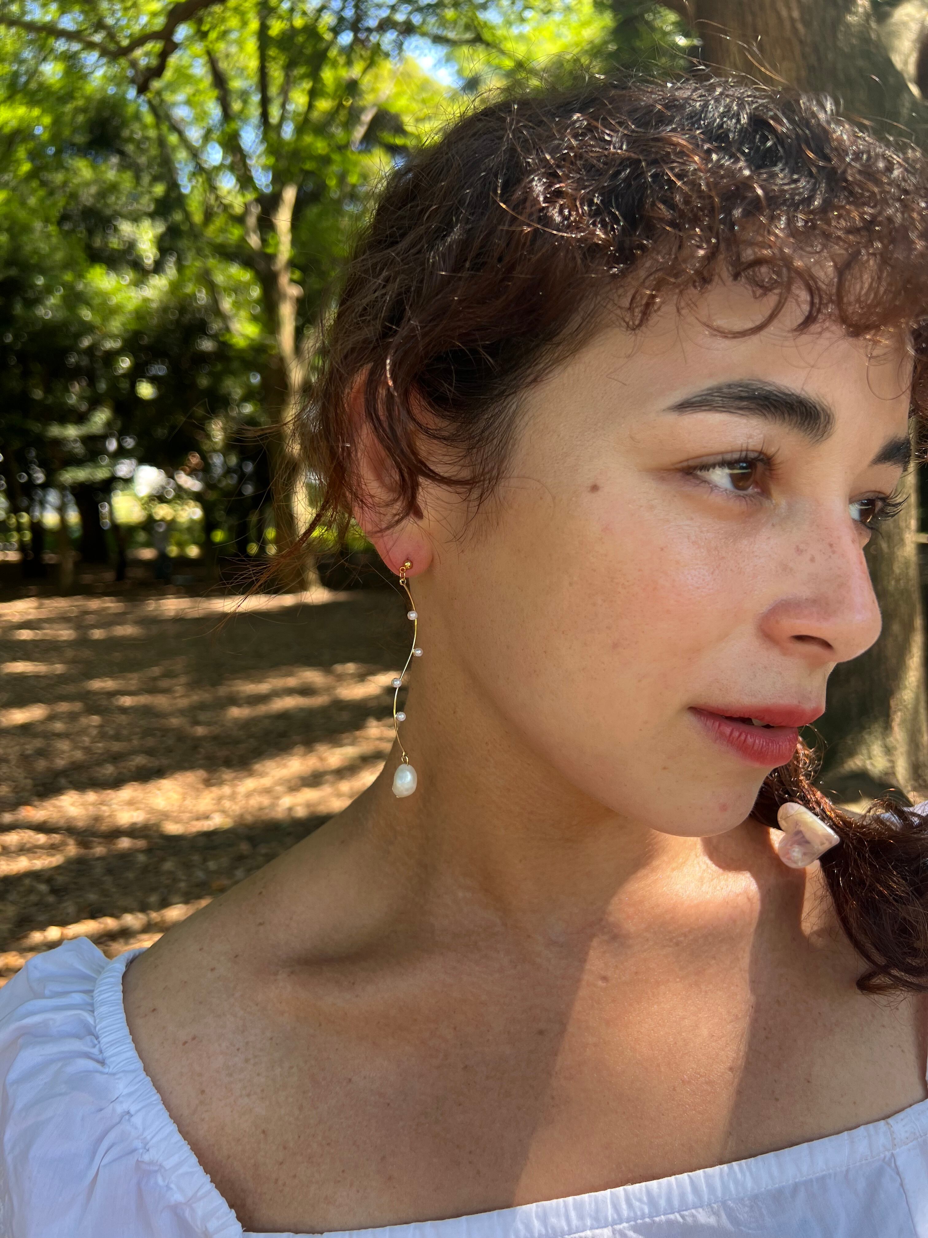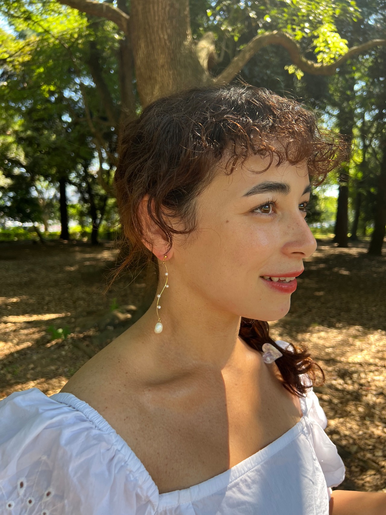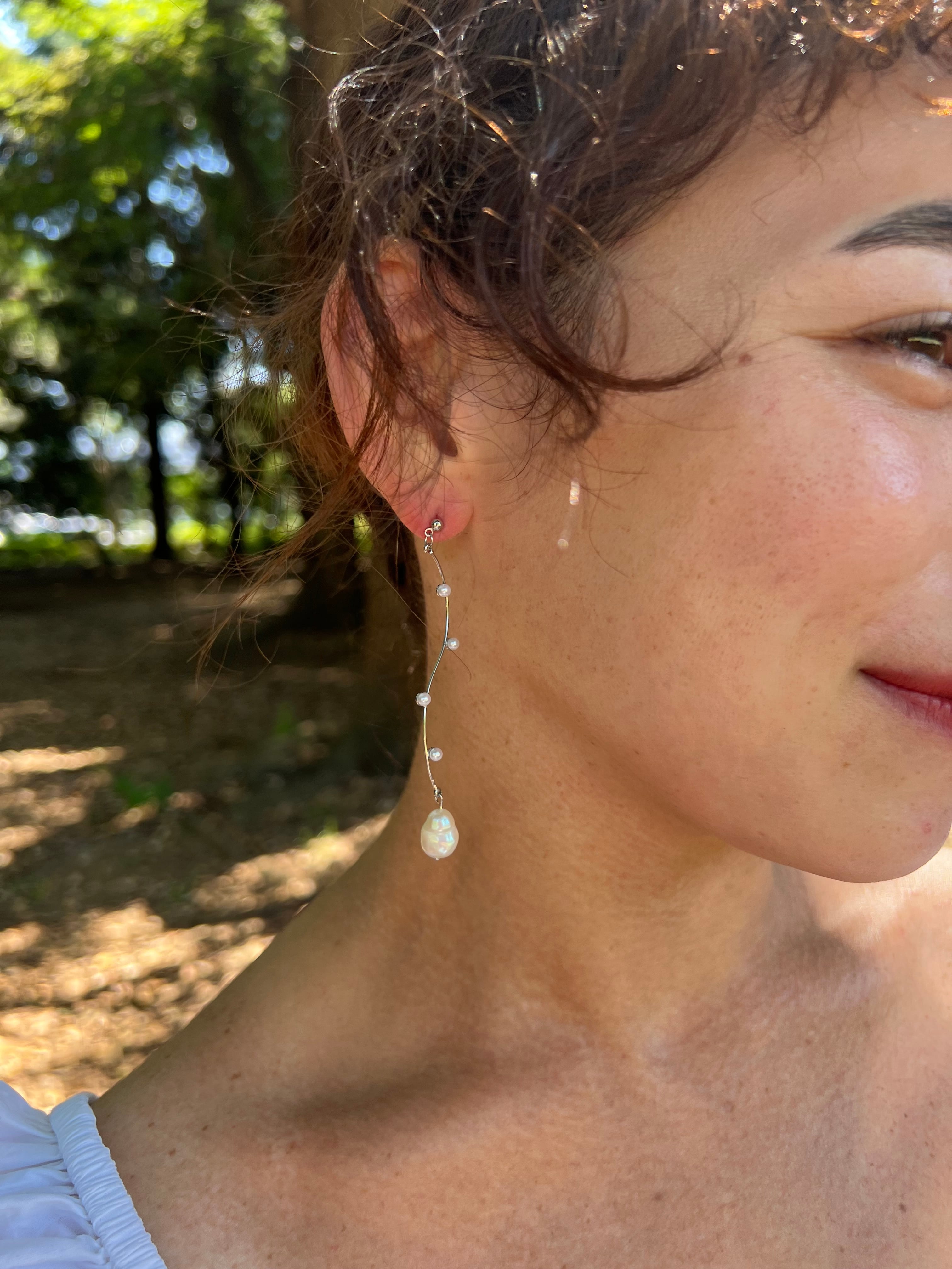 プチサイズのパールと緩いウェーブ、厳選した天然の淡水パールを組み合わせたオケージョンシーンで取り入れていただきたいアクセサリー。