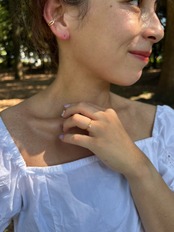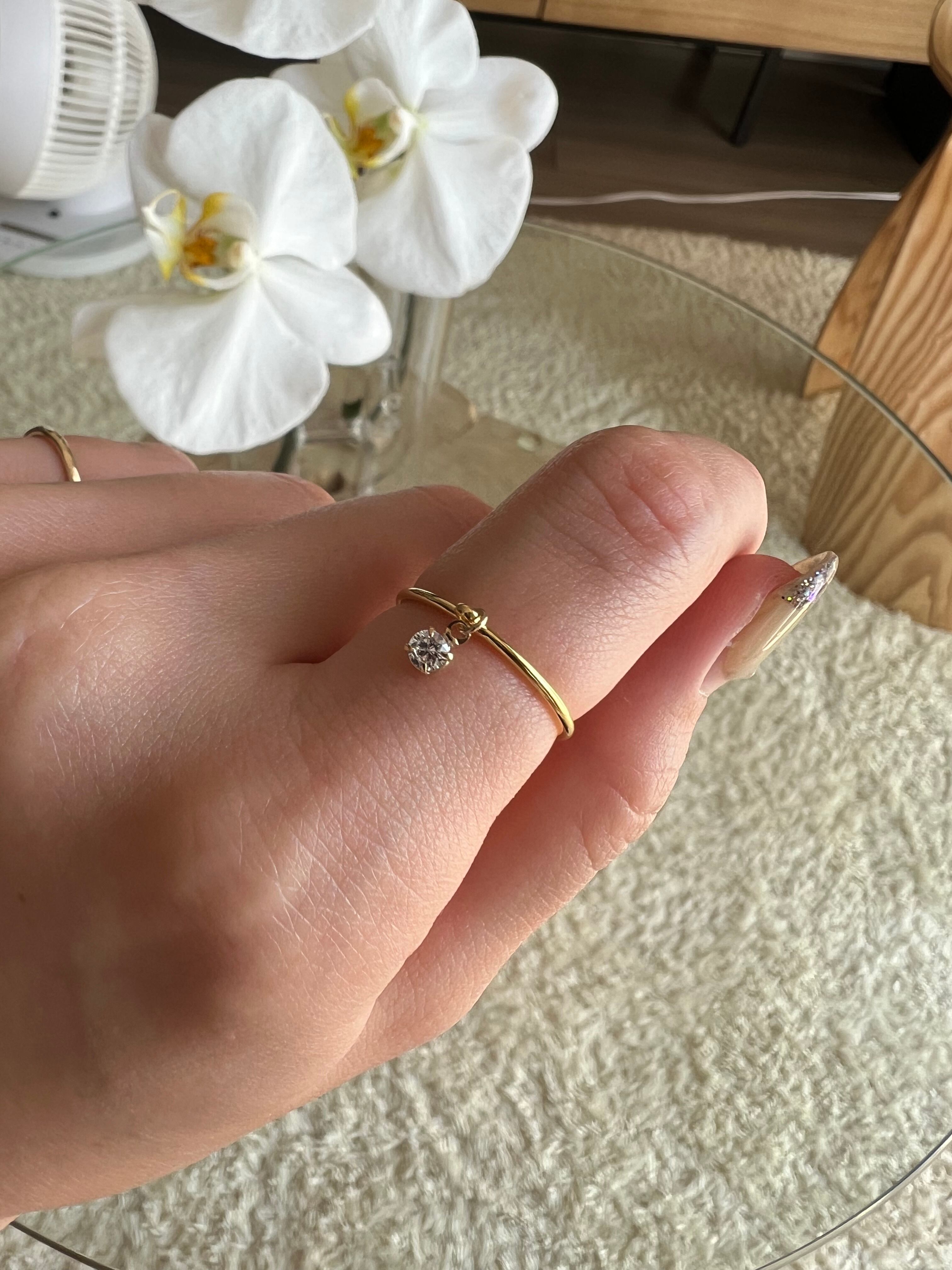 サイズはワンサイズとなりますが、シルプルなシルエットですのでどの指にご着用いただいても可愛らしく、万能にお使いいただけます。