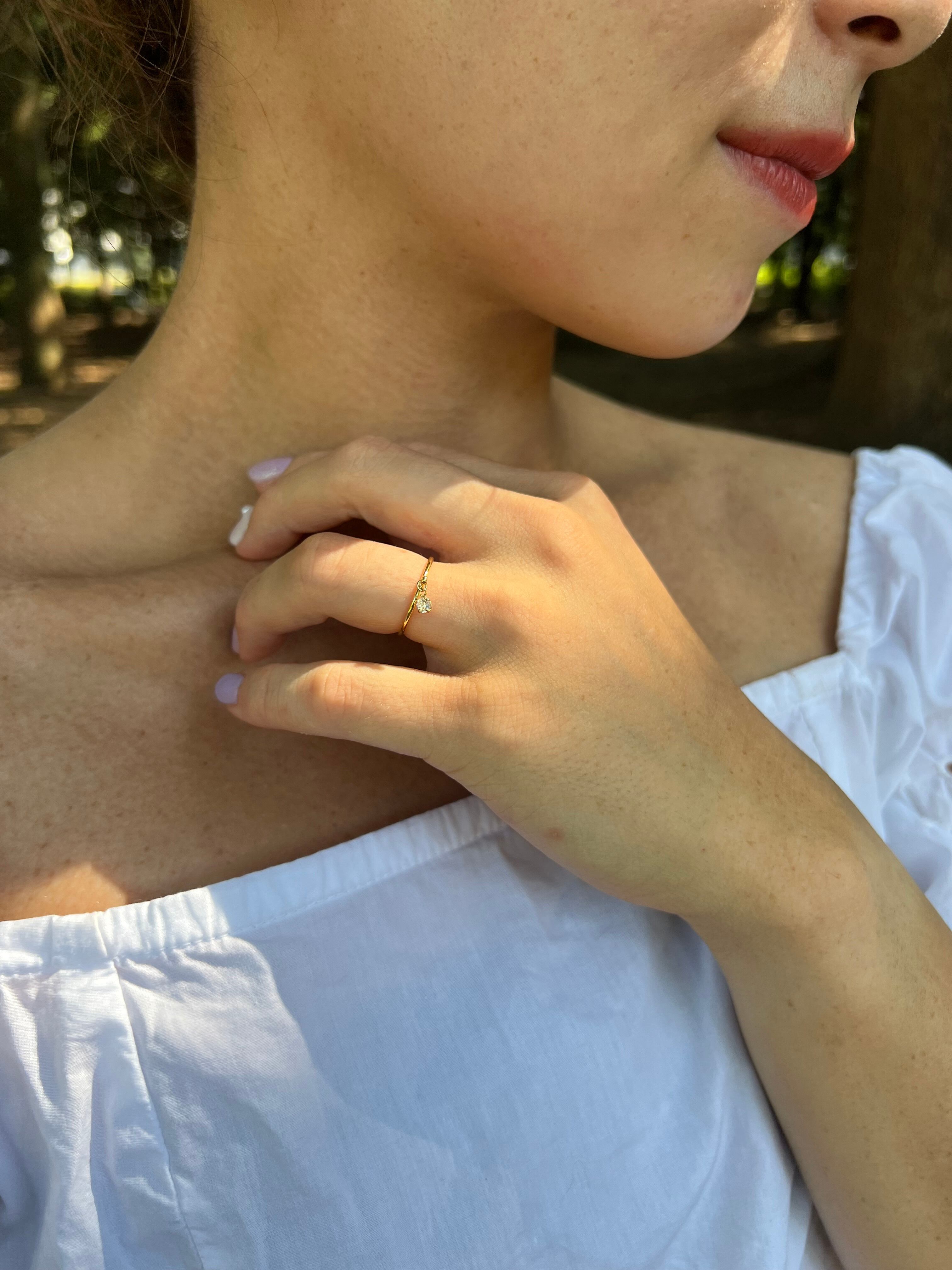 一粒のダイヤモンドのように輝くキュービックジルコニアがポイントのシンプルなリング。