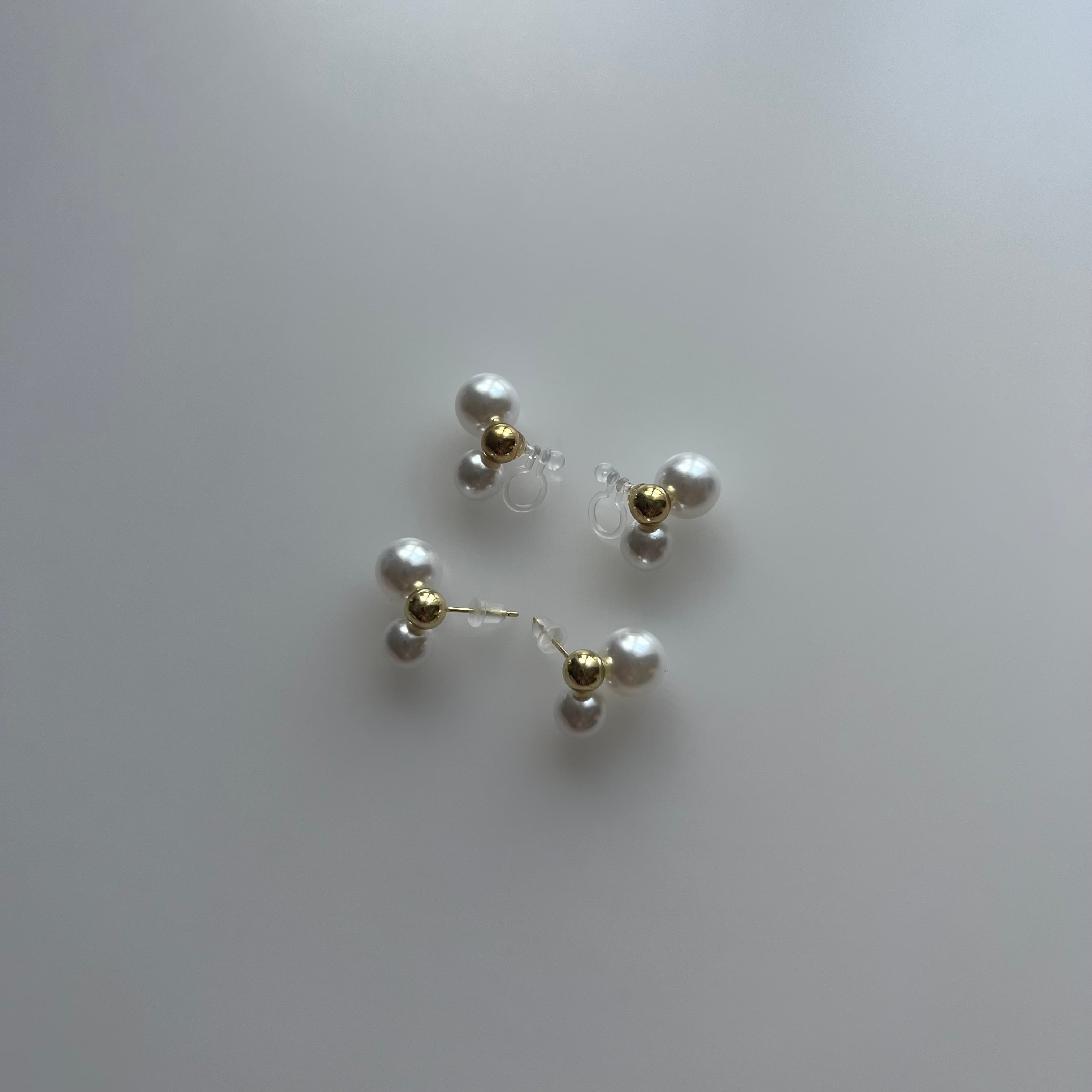 ころんとしたラウンドパールとゴールドのラウンドがついたアクセサリー。
