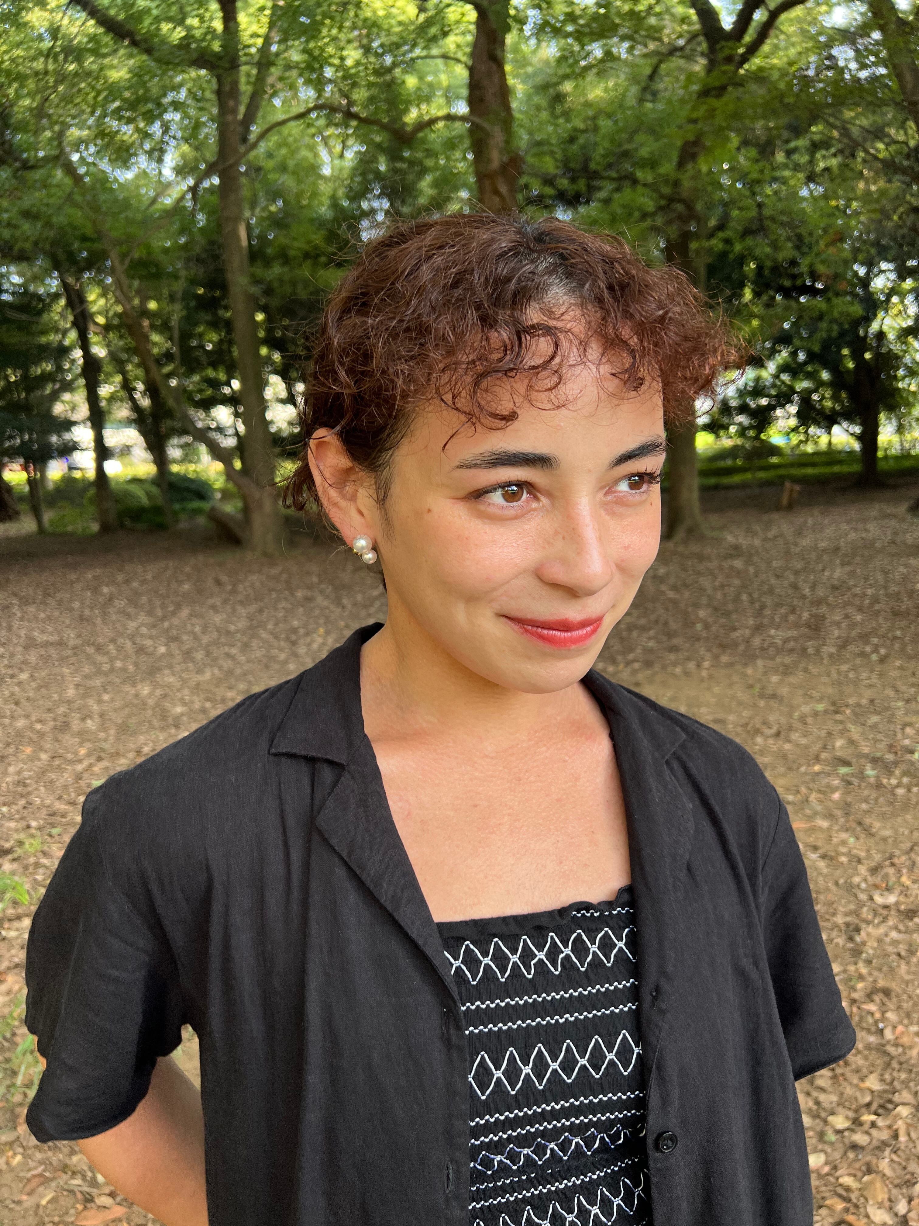 シンプルな構造ですが、耳の周りで弾けるようなシルエットがポイントのアイテムです。