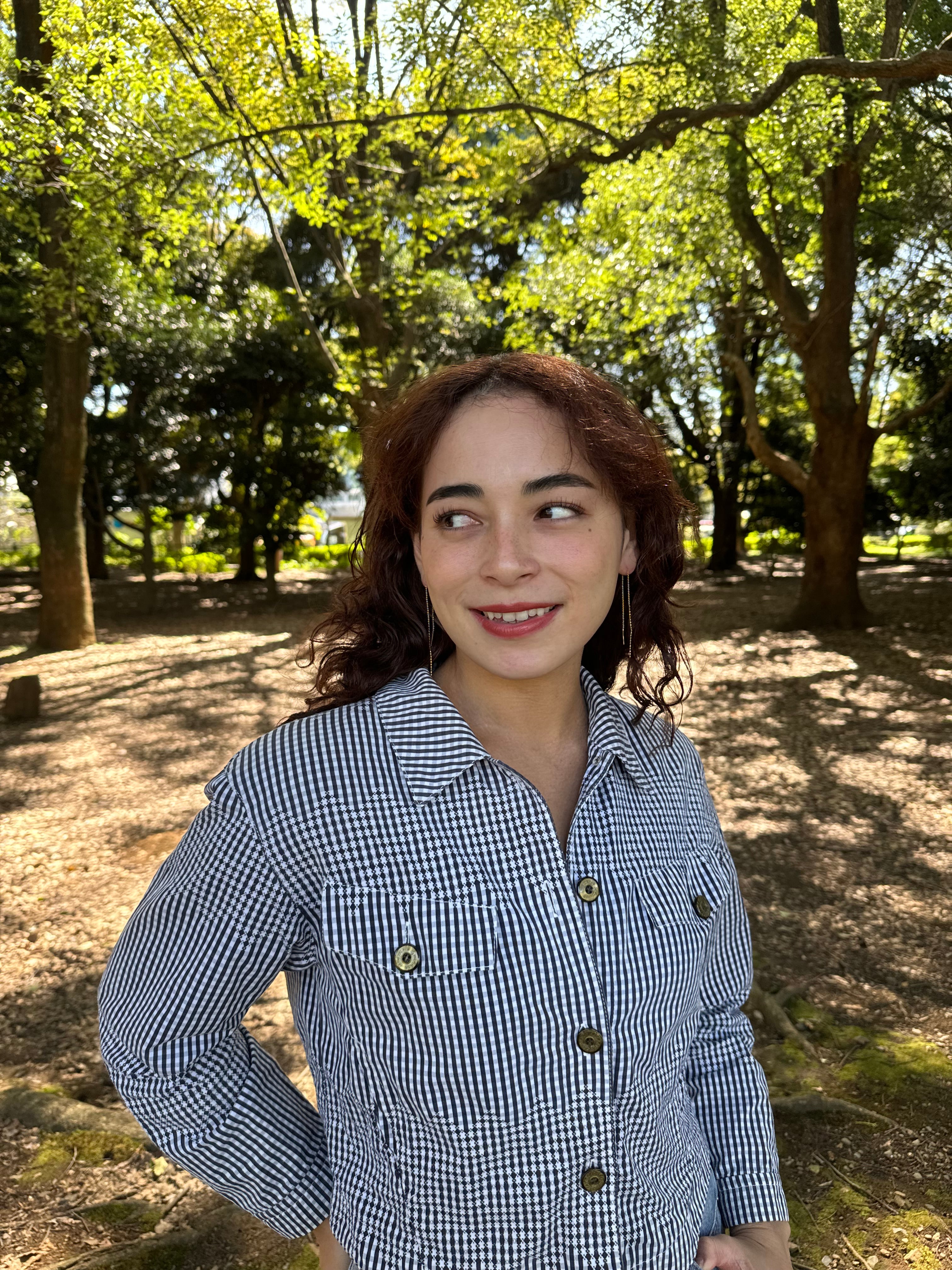 一見、シンプルなゴールドのチェーンに見えますが、下から4cmくらいの部分は小さな粒々が付いていて、さりげないアクセントをプラスしました。