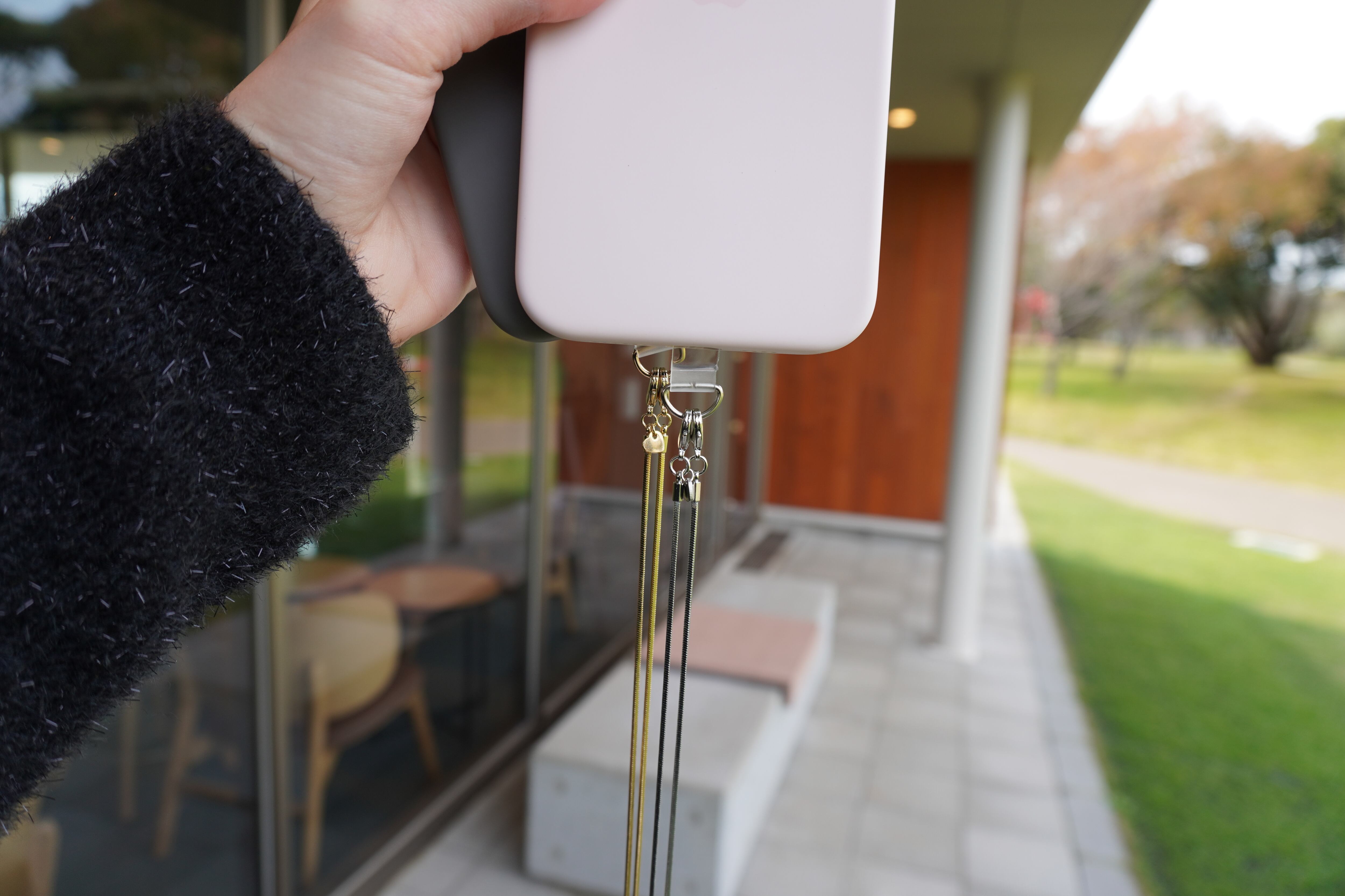 華奢で細めのチェーンを採用し、耐久性を持ちつつも、主張しすぎず、アクセサリー感覚でお持ちいただけるデザインに仕上げました。