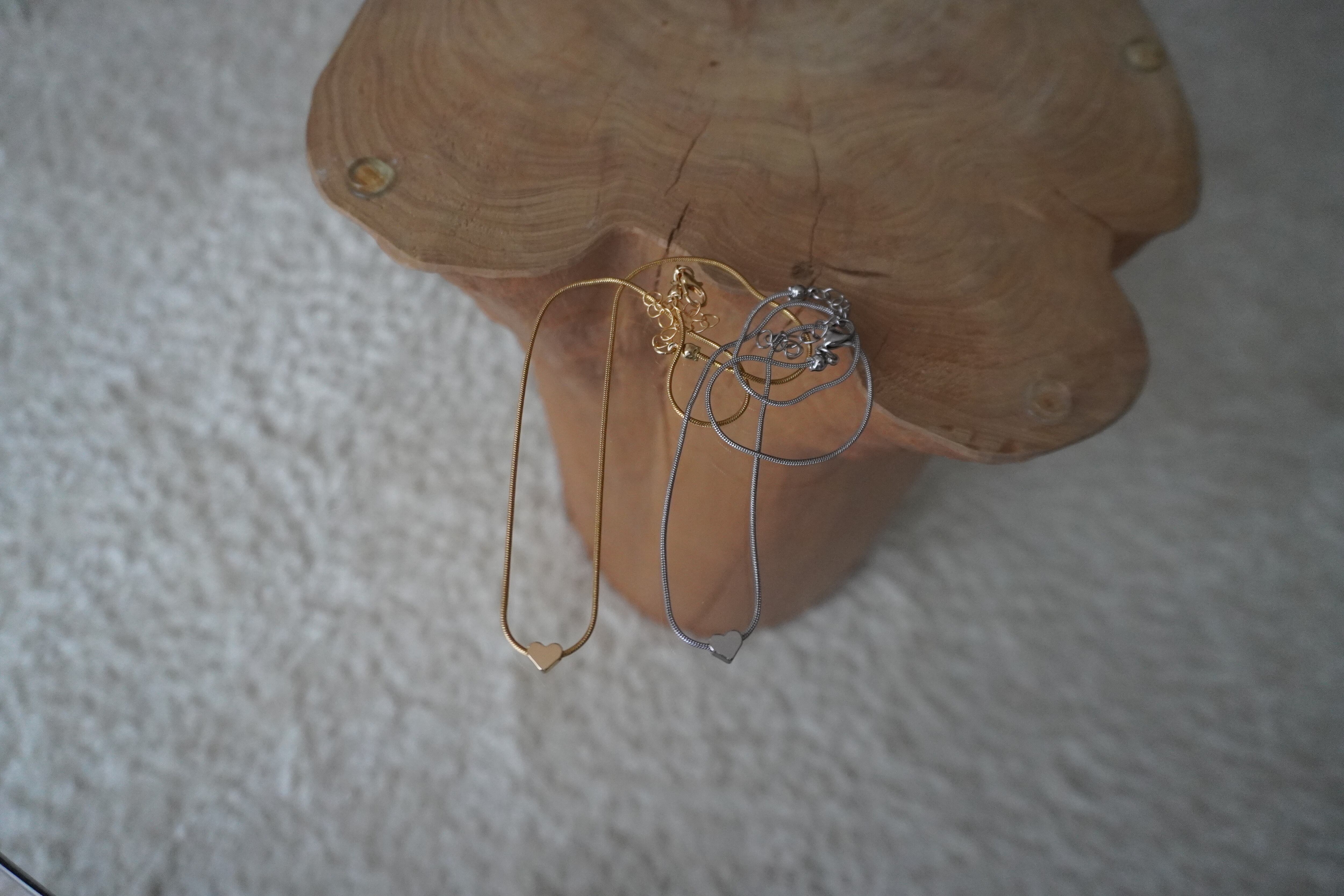 シンプルなスネークチェーンにプチサイズのハートをあしらったネックレス。