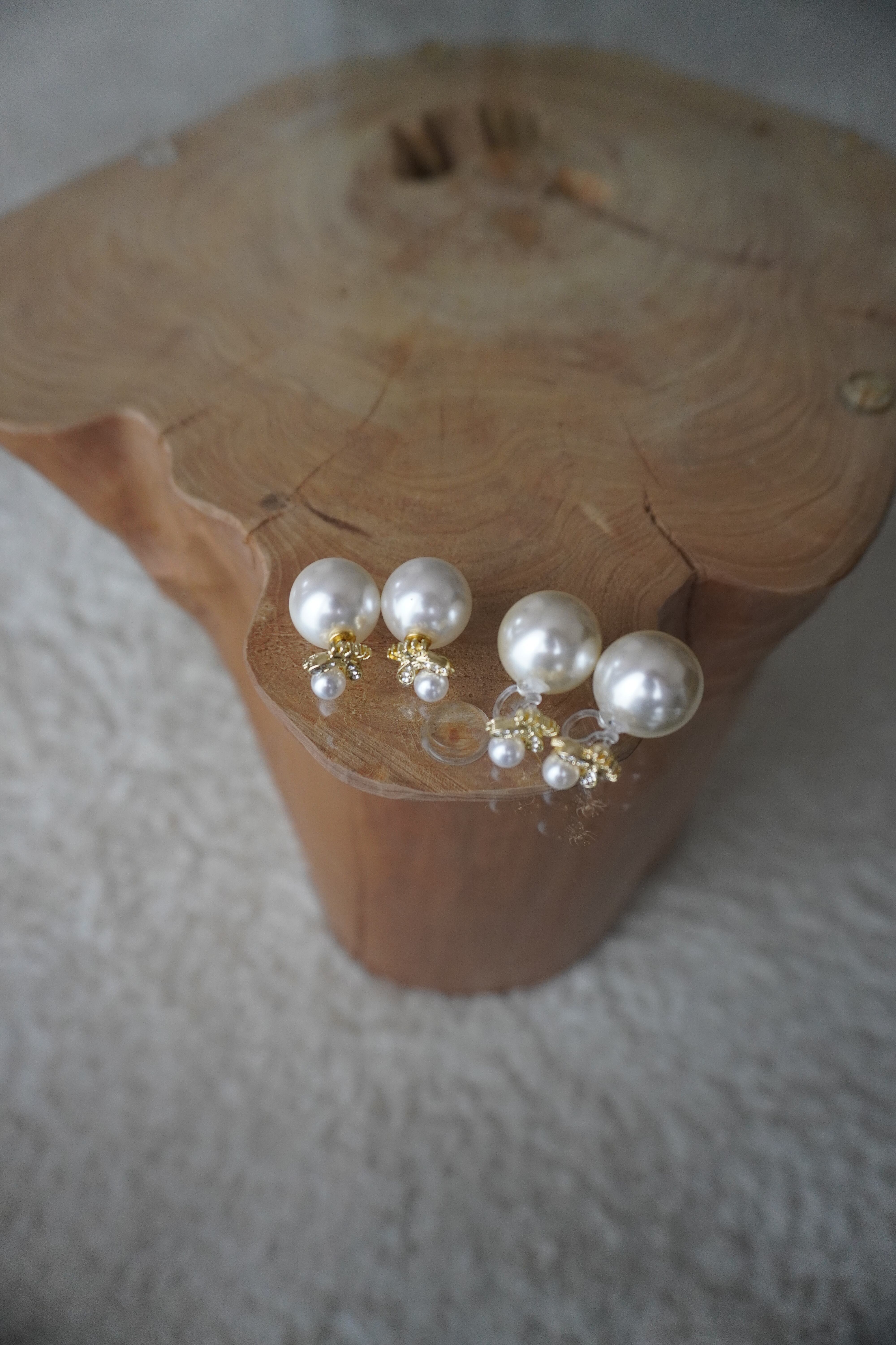 キャッチ部分もパールを使用しておりますので、着用した際、どの角度から見てもお楽しみいただけるアイテムです。