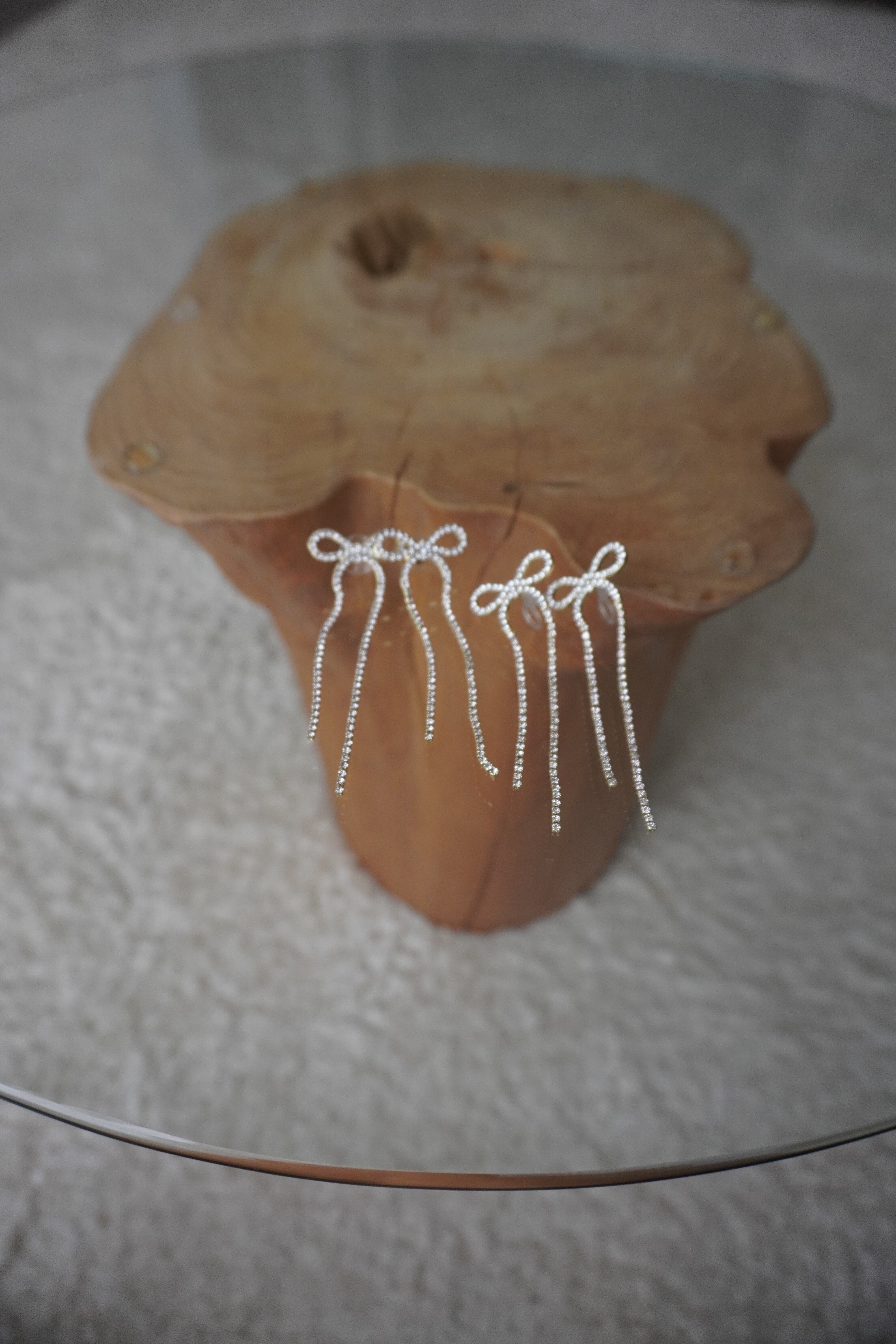 リボンのチェーン部分が動くたびに、きらっと輝き、揺れるので、是非そちらもお楽しみください。