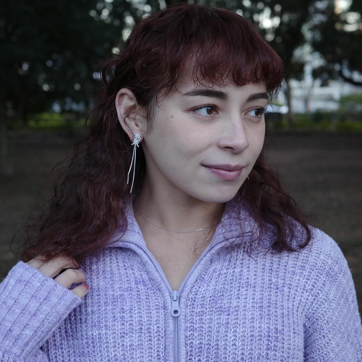 イヤリングもピアスをつけているかのように見えるよう、工夫いたしました。