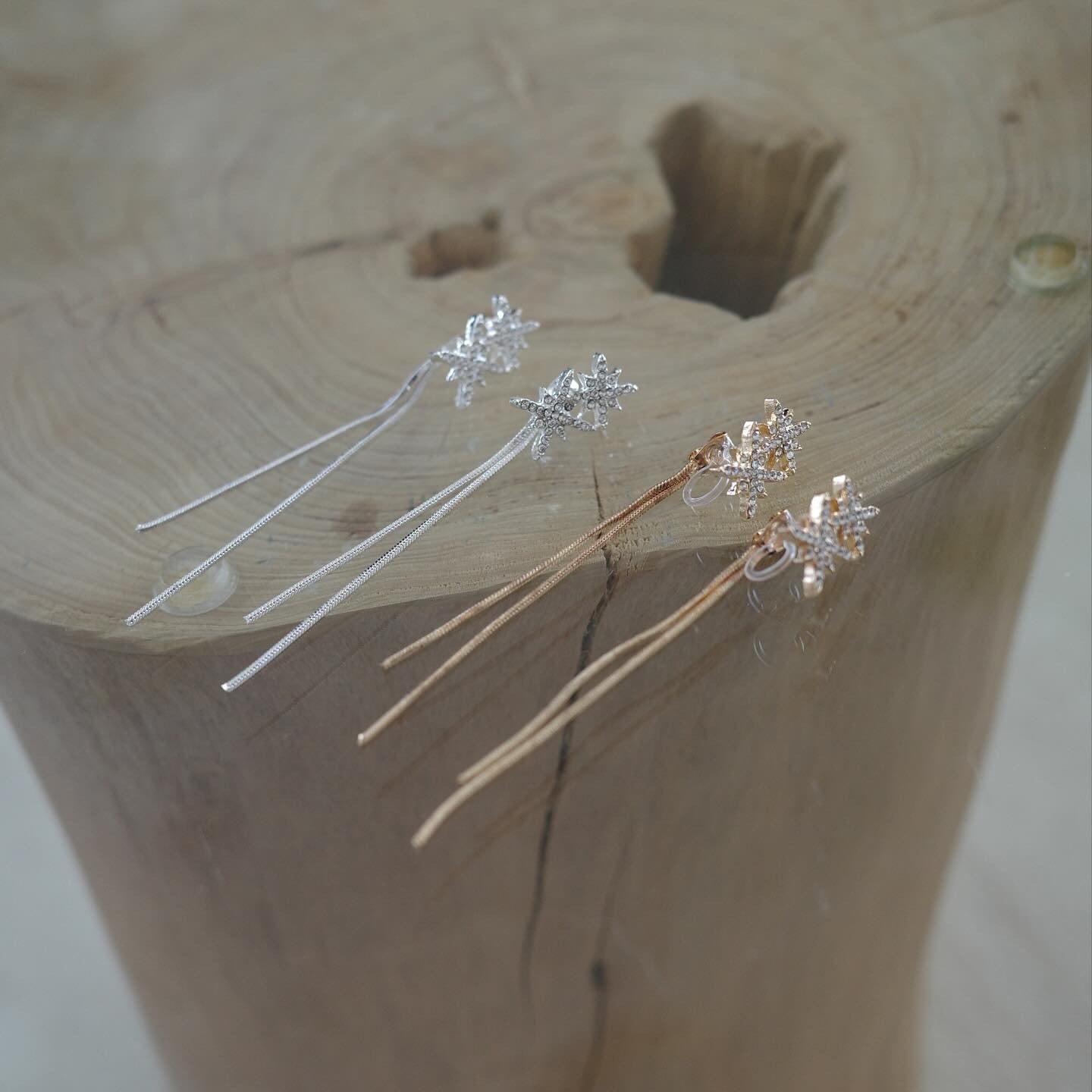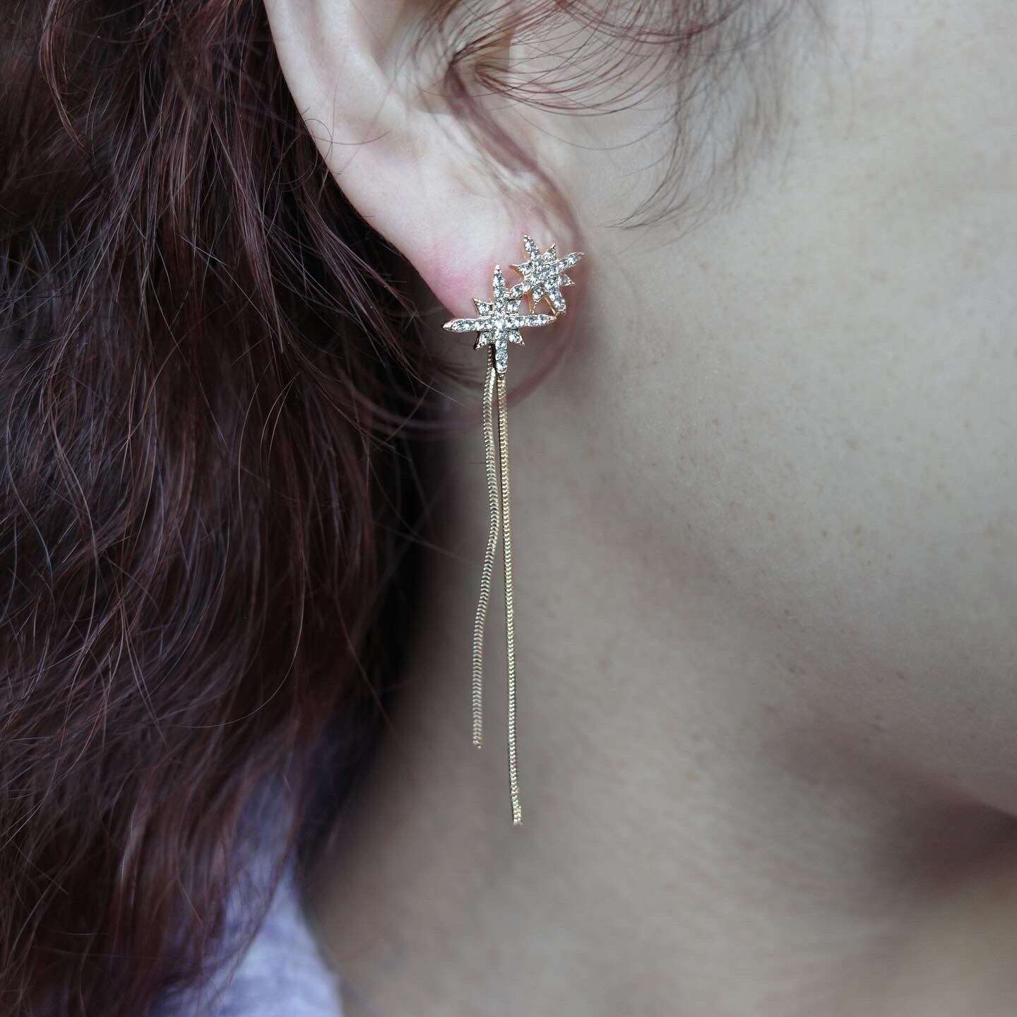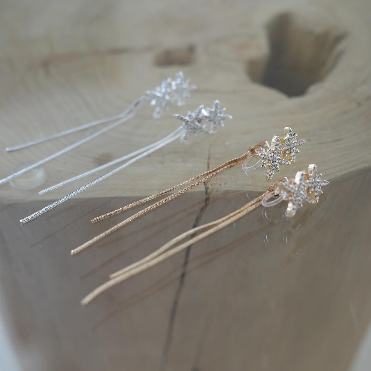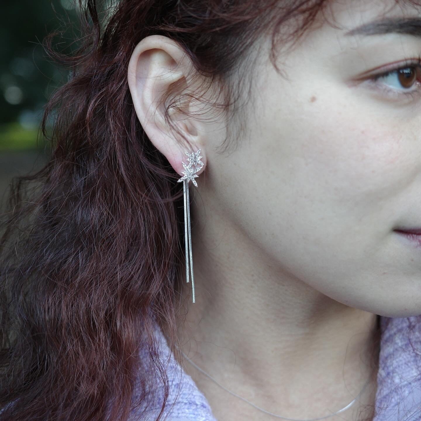 ラインストーンを埋め込んだスターから伸びるチェーンがまさに流れ星のようなシルエットに。