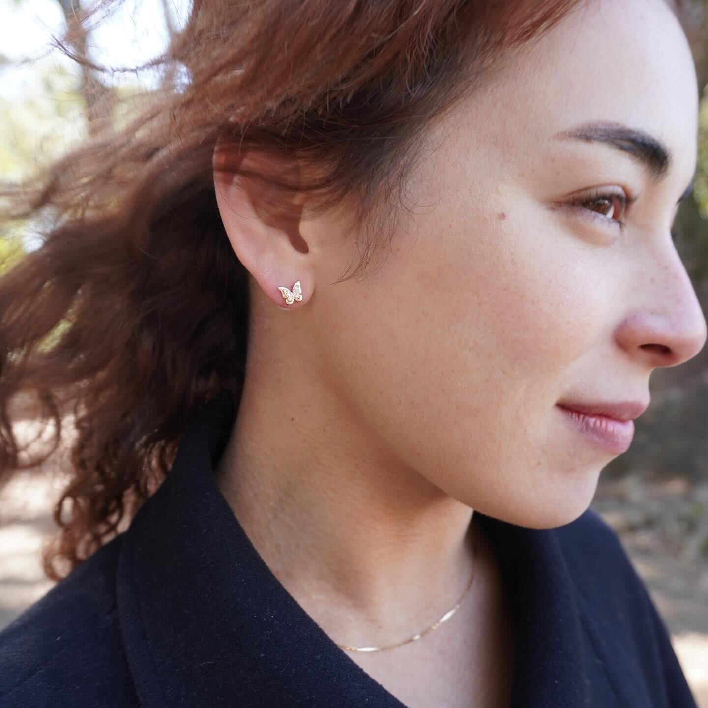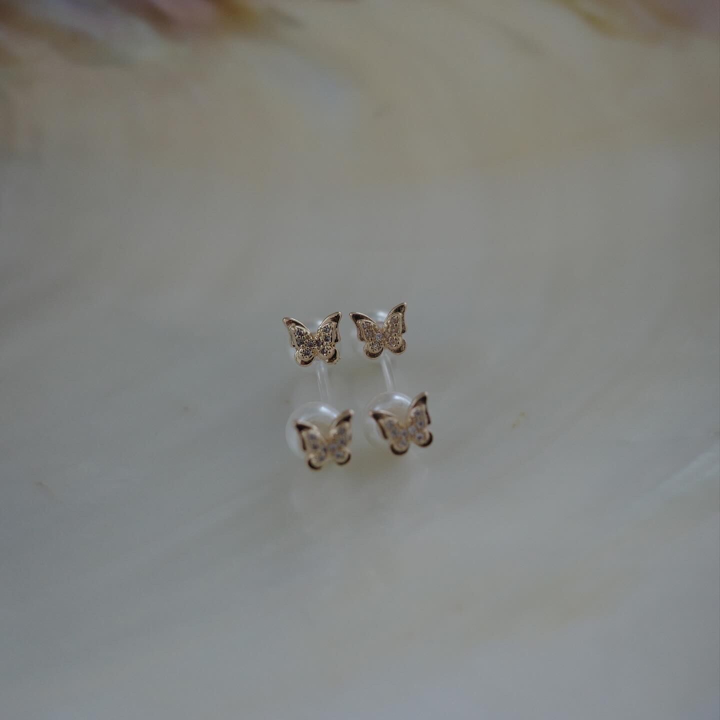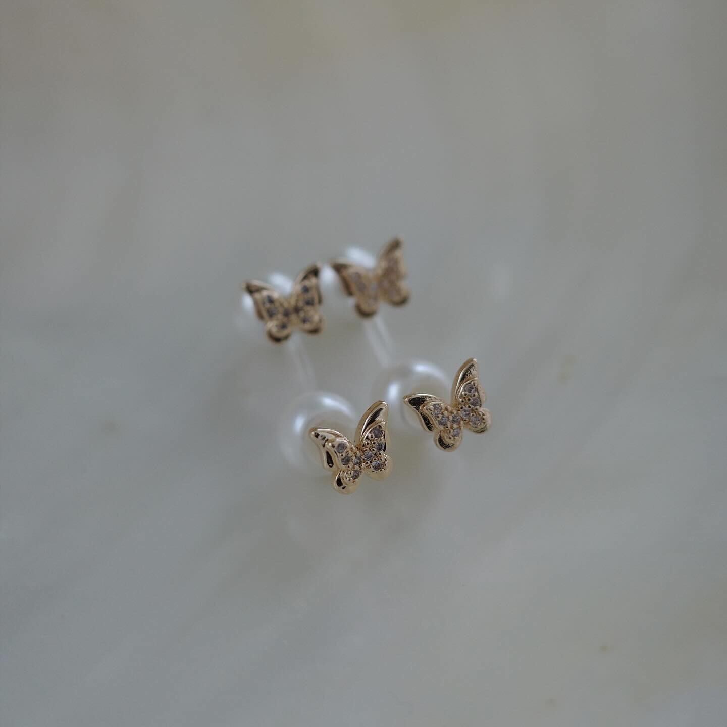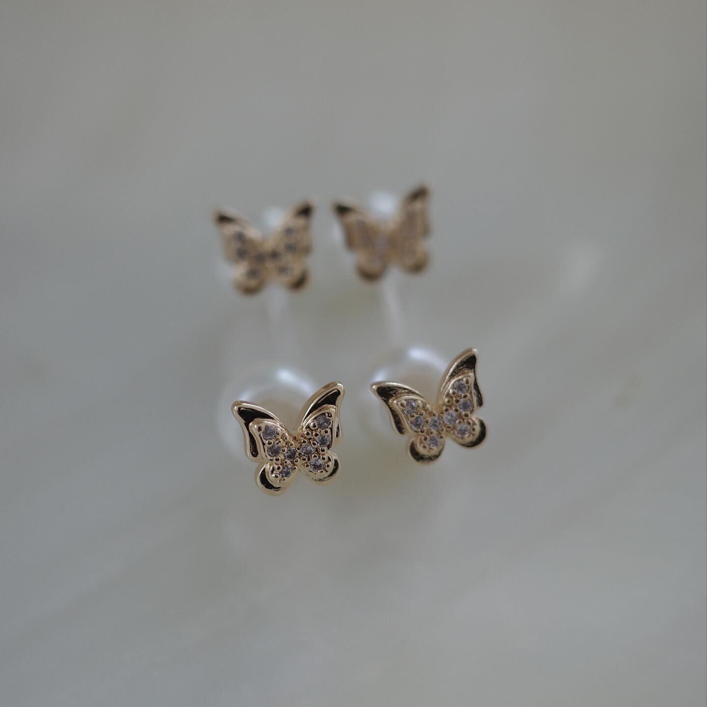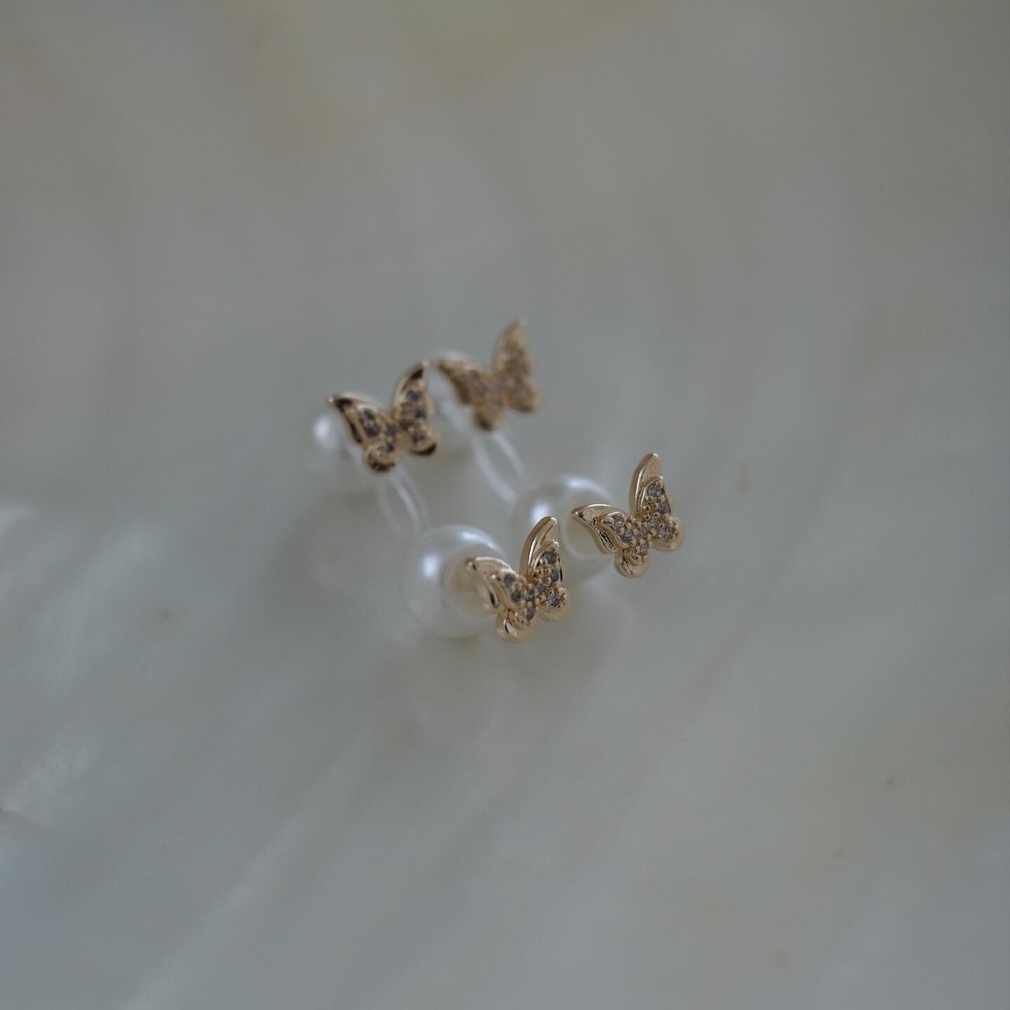 ミニサイズの蝶とパールを組み合わせたアクセサリー。