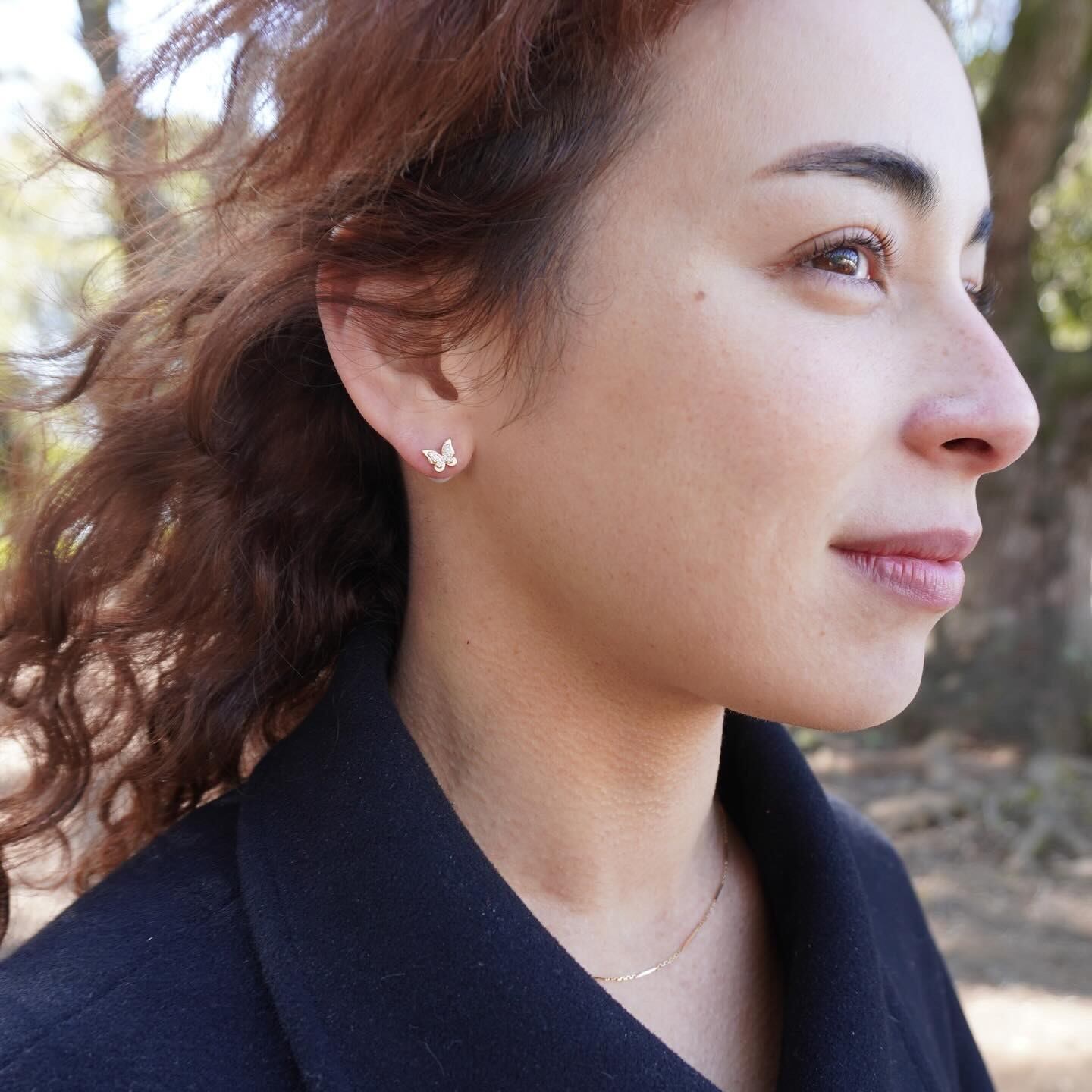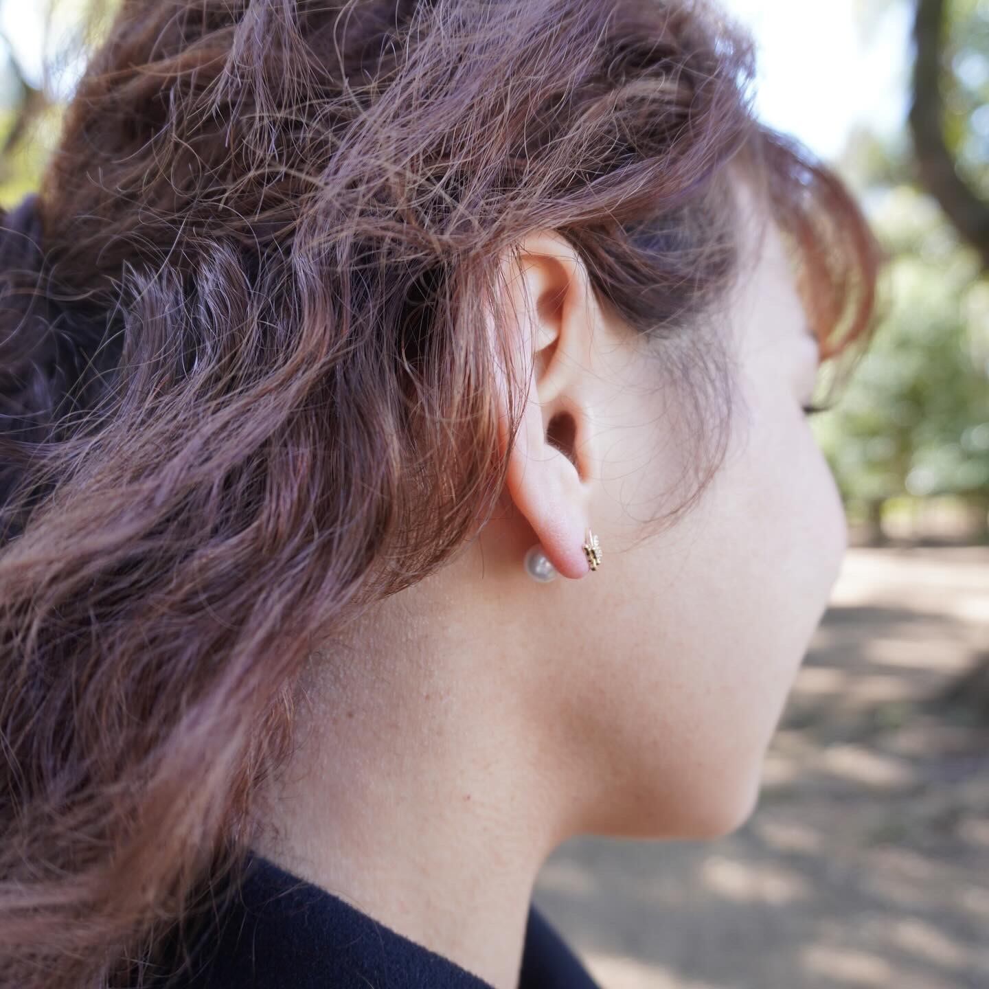 小ぶりなサイズ感ですが、キャッチ部分をパールにすることでどの角度から見てもお楽しみいただけるデザインに仕上げました。
