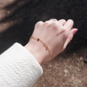 ミニハートモチーフのゴールドブレスレット。
