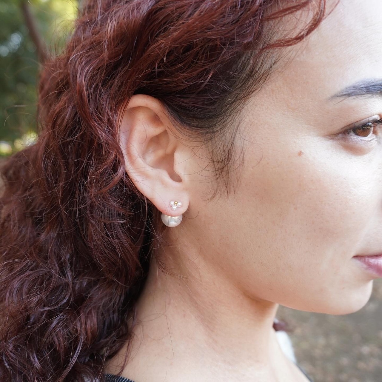 大きなパールキャッチを後ろでご使用した場合、正面からも見えるパールのサイズ感がポイントです。