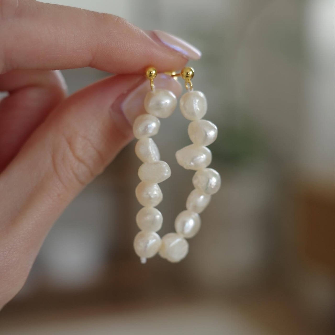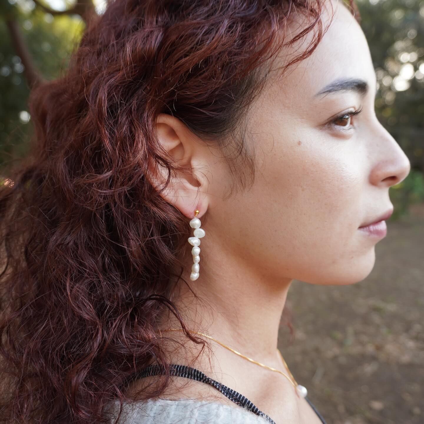ちょっぴり歪なパールですが、一列に連ねて、その歪さが味になるデザインに仕上げました。