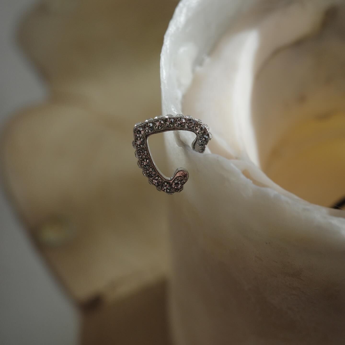 たくさんのクリスタルをあしらったイヤーカフ。