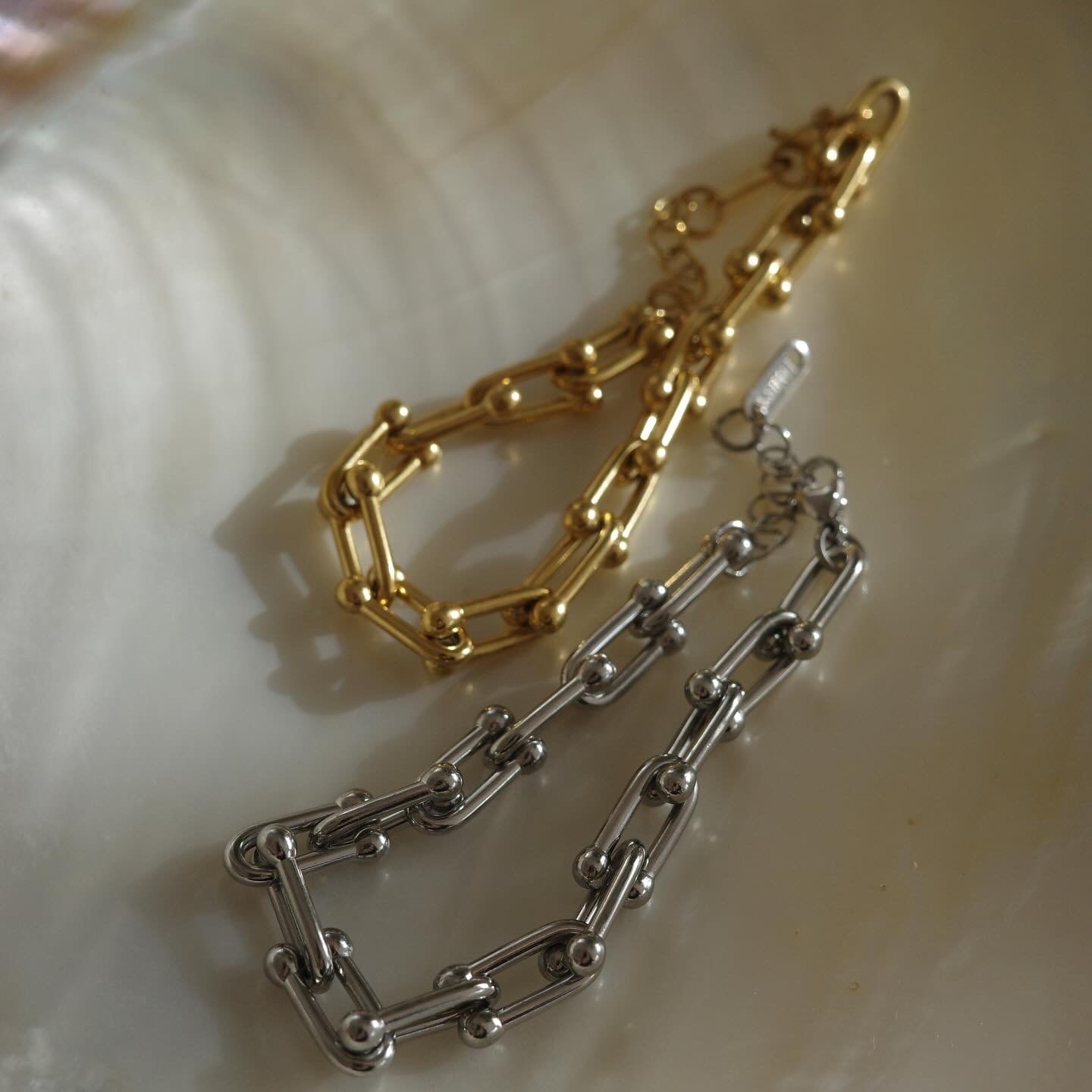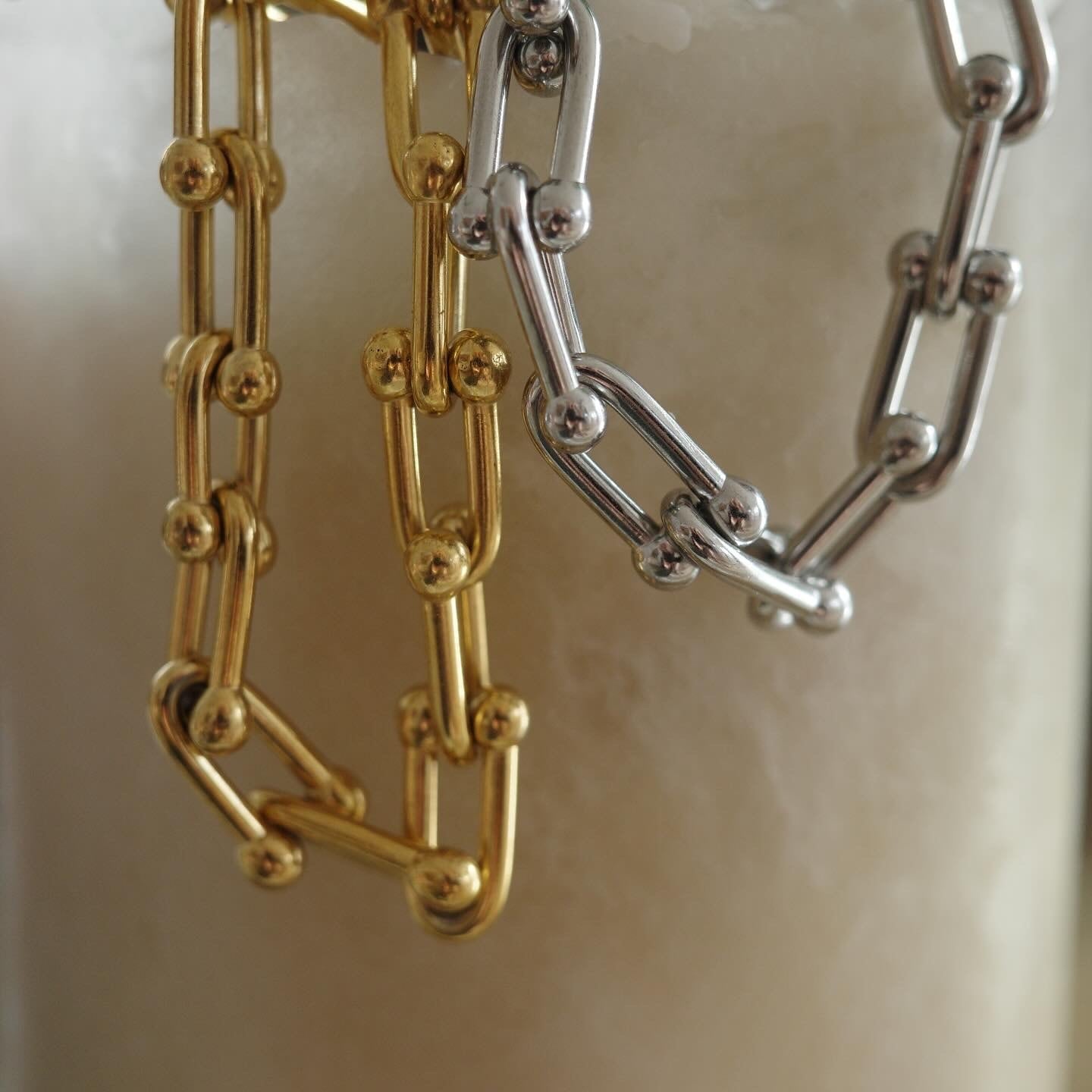 少し大ぶりなチェーンを使用しておりますので、手首を華奢に見せてくれます。