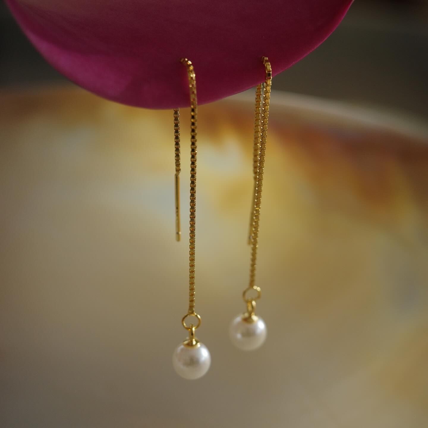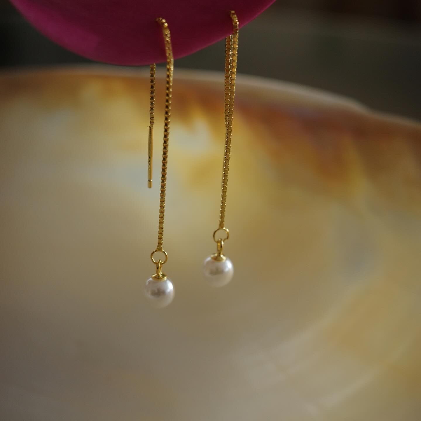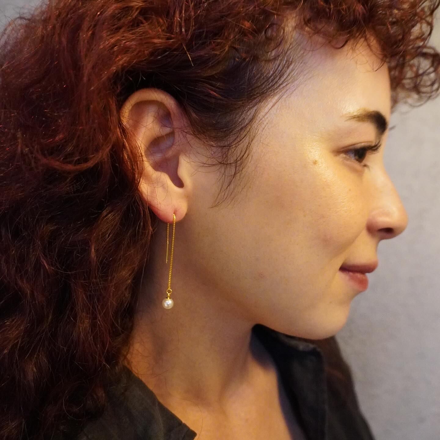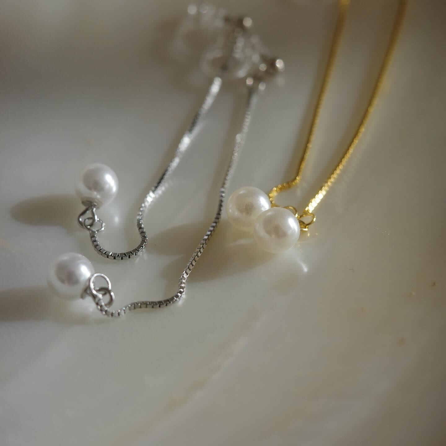 上品なボックスチェーンをあしらい、コロンとした小さめの丸いパールがアクセントになってくれます。