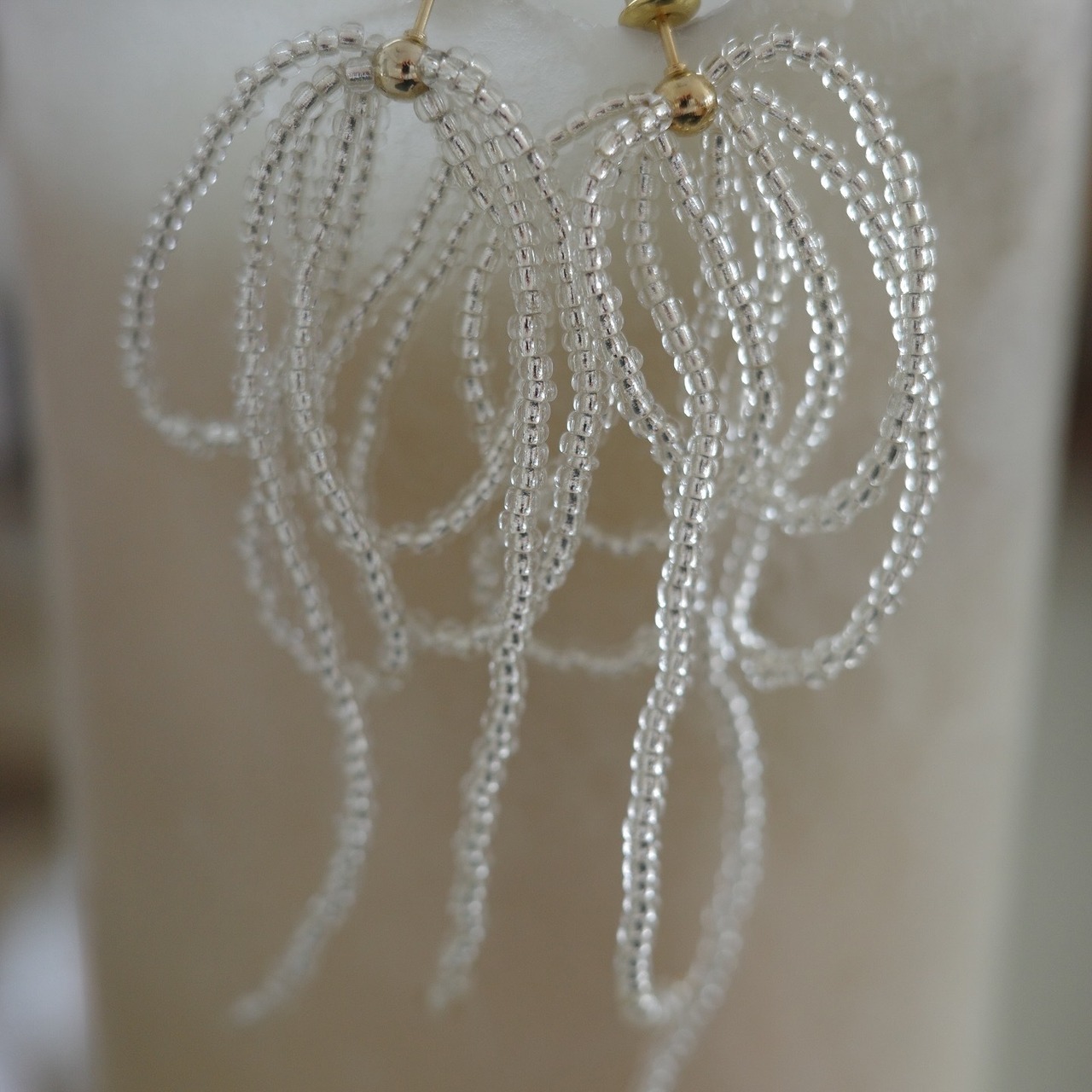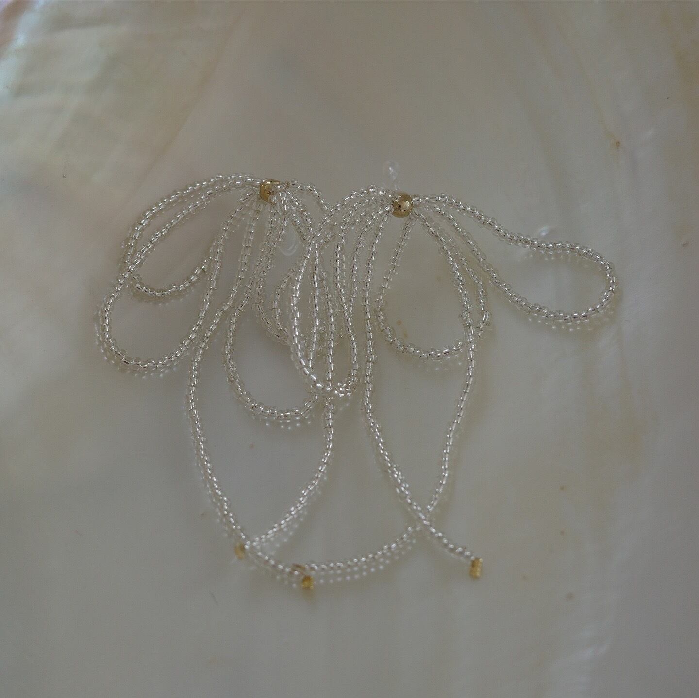 細かなビーズで形成されたリボンは華奢で繊細で、儚げな印象を与えてくれます。