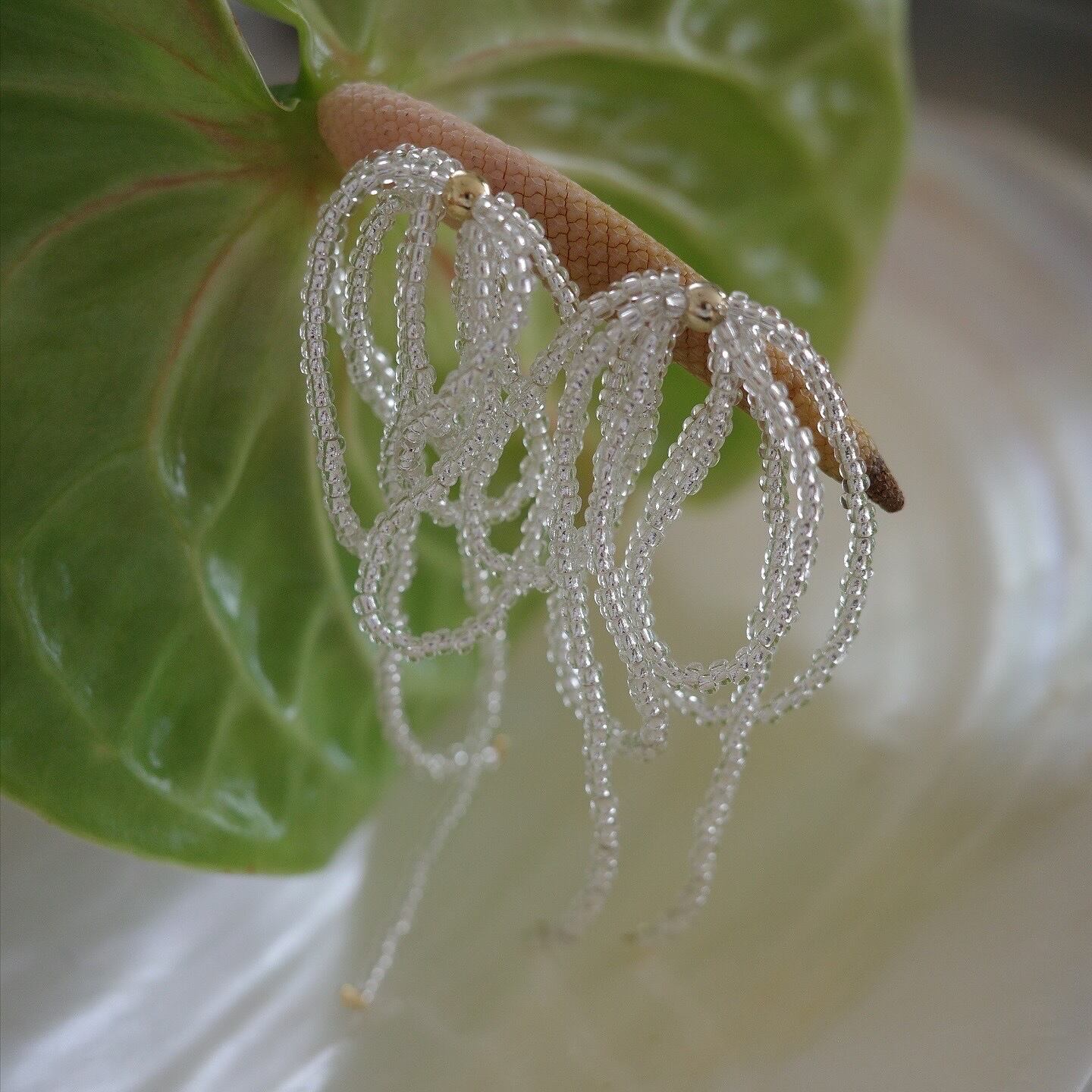 主役級のアクセサリーですので、シンプルなお洋服と合わせたり、クリアビーズですので夏らしいお洋服と合わせたり、取り入れ方はさまざまです。