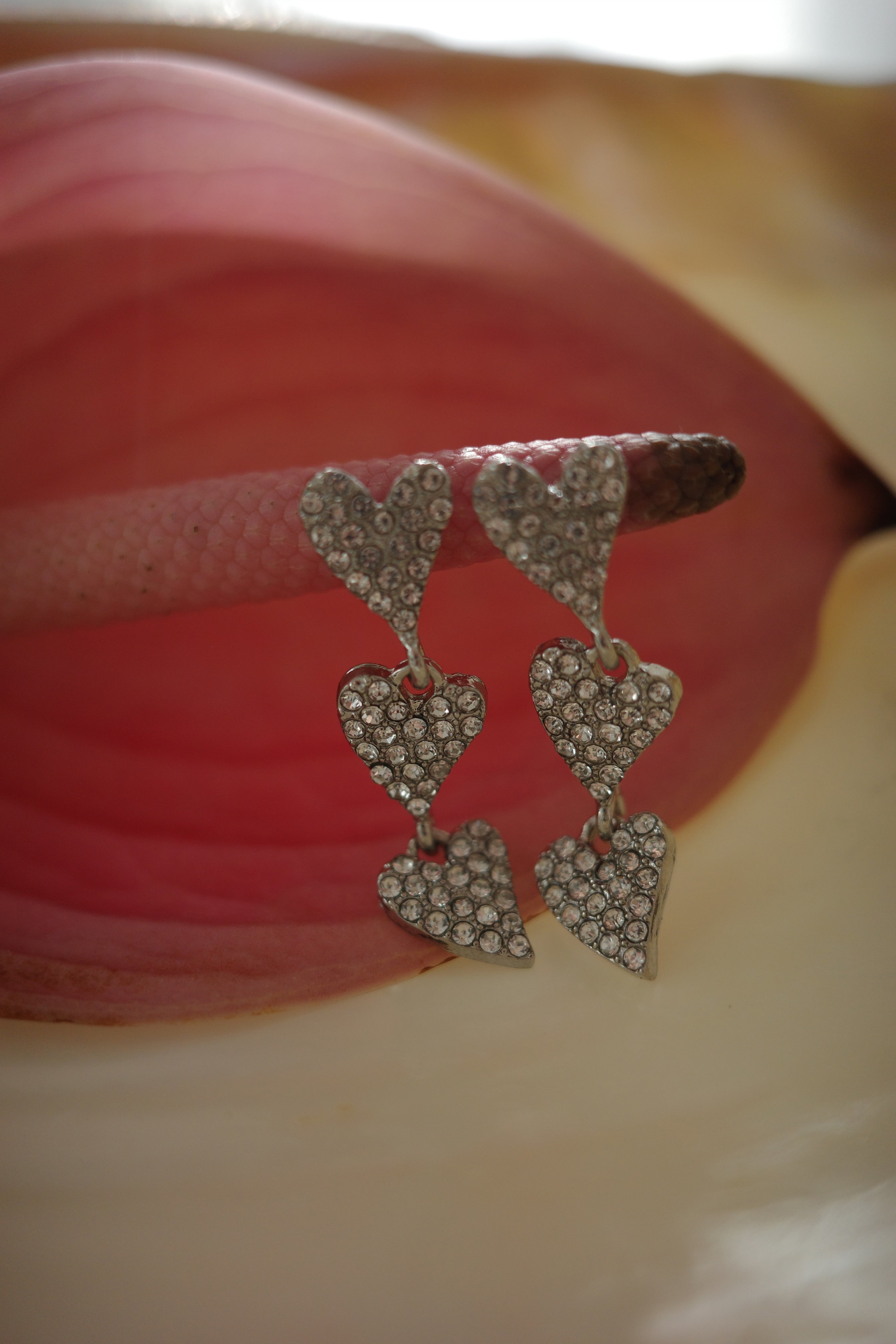 ハート×クリスタルの相性は良く、ハート型で可愛らしさがありつつも、きらっと輝くクリスタルが上品さをプラスしてくれます。