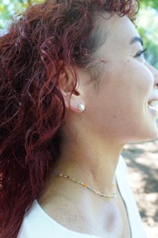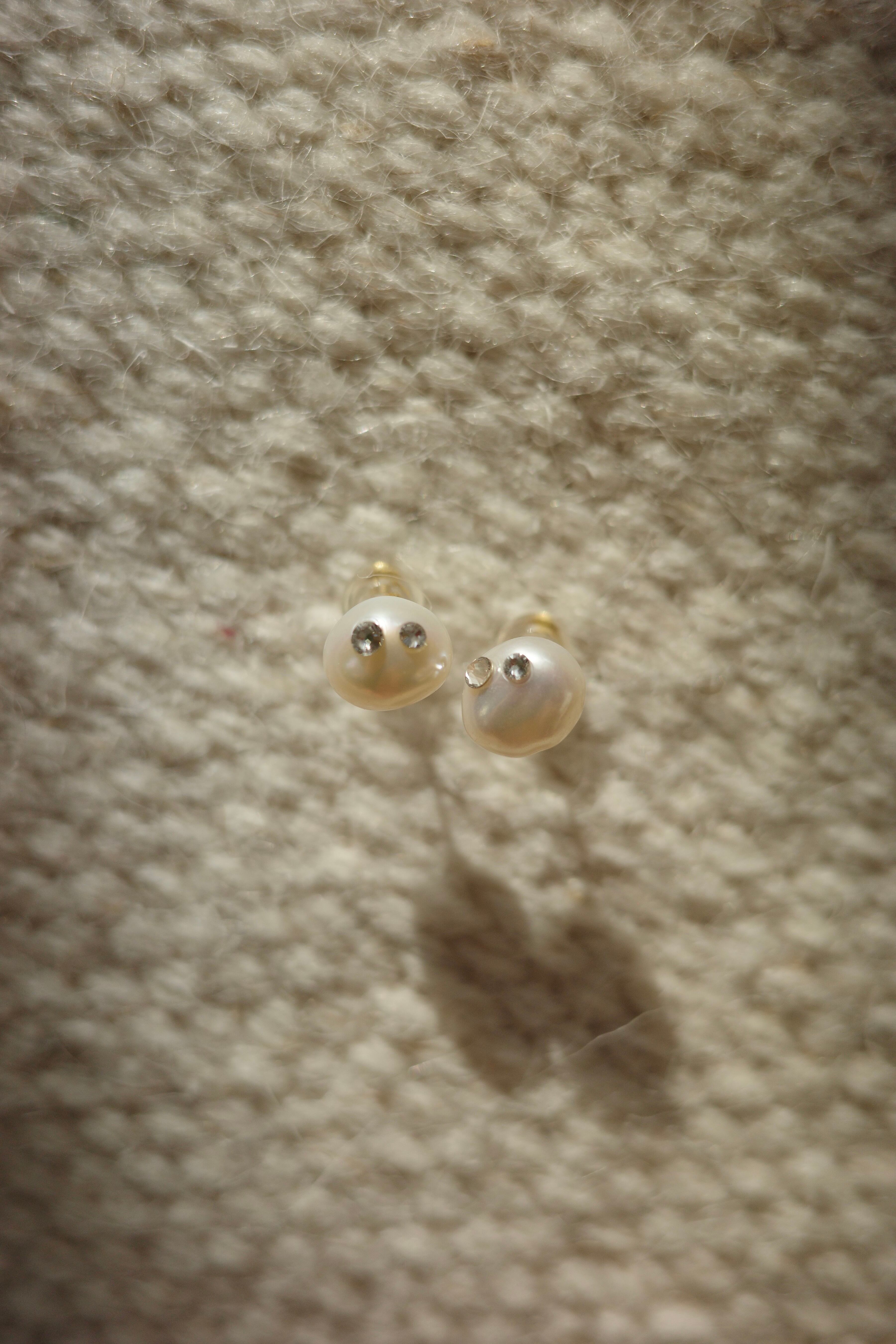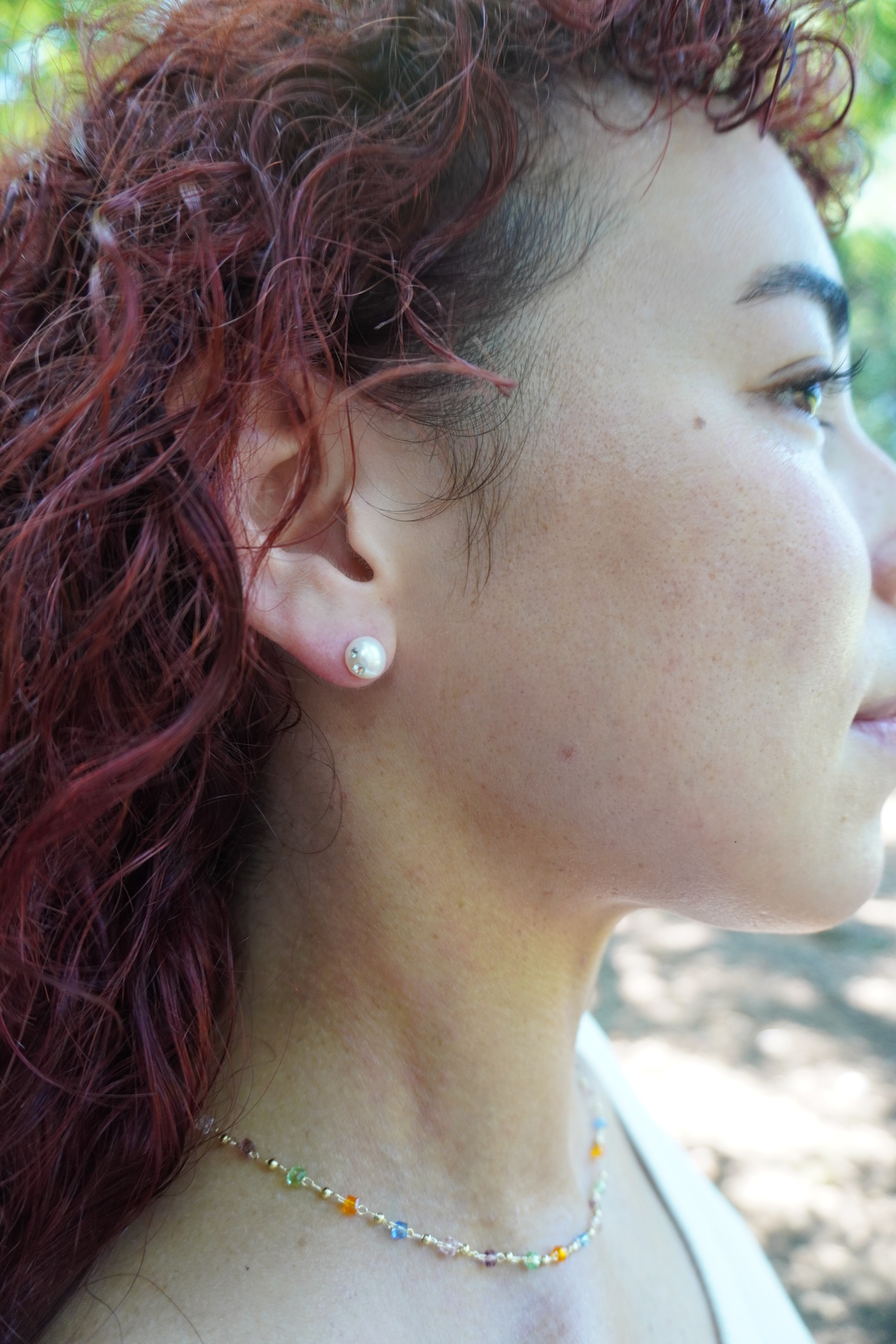 小ぶりな淡水パールにクリスタルを並べたアクセサリー。