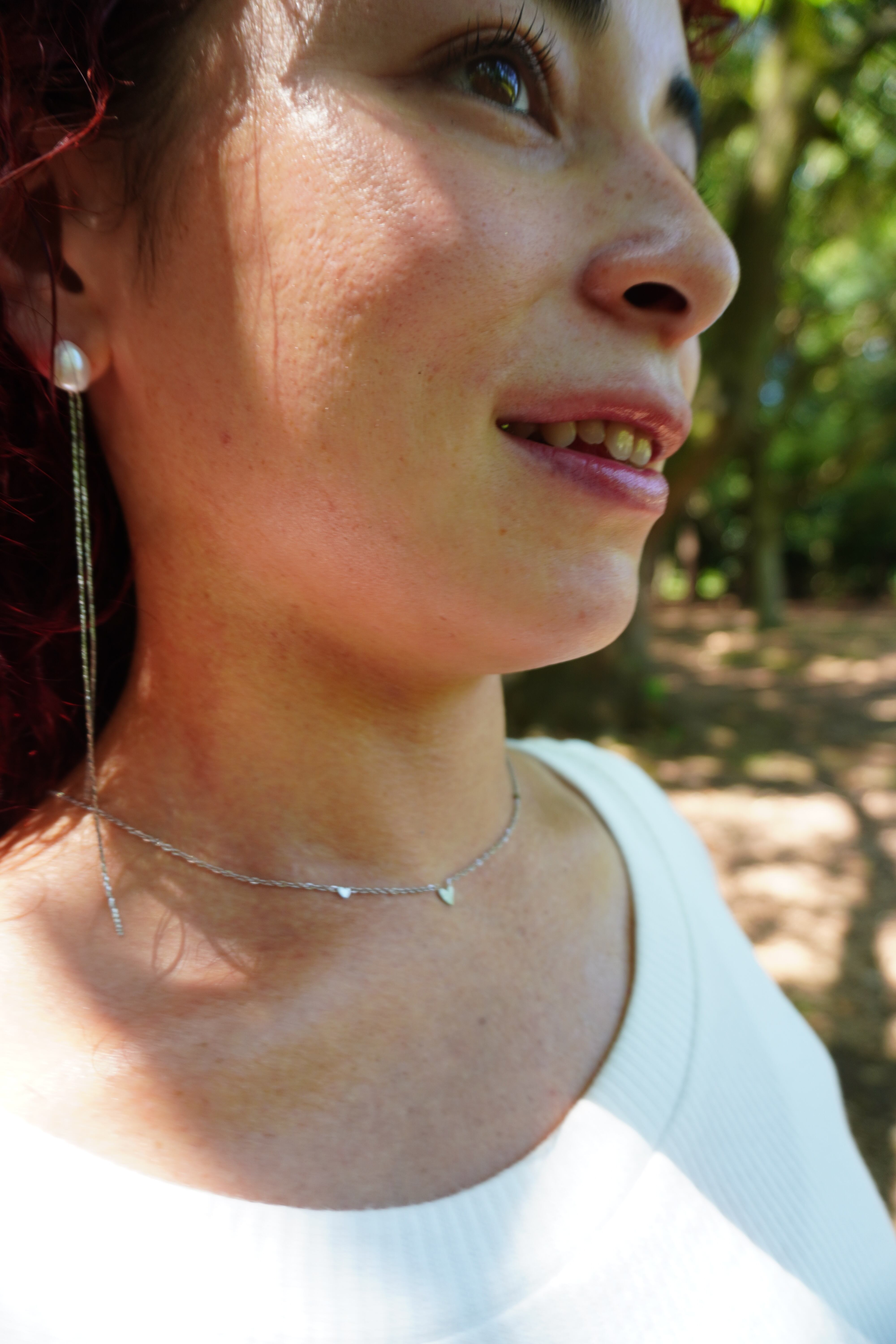 さりげないプチサイズのハートが首元でアクセントになってくれます。