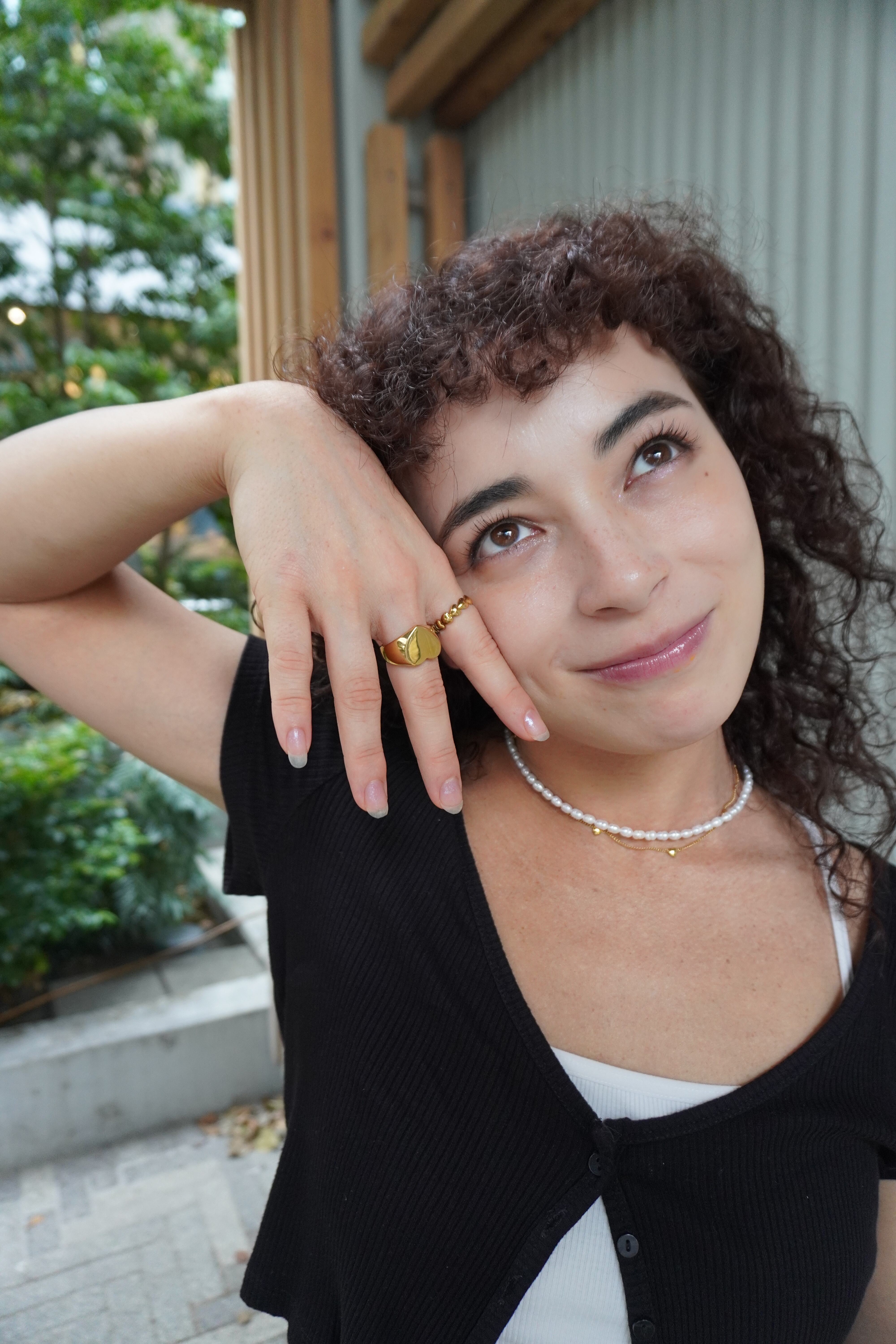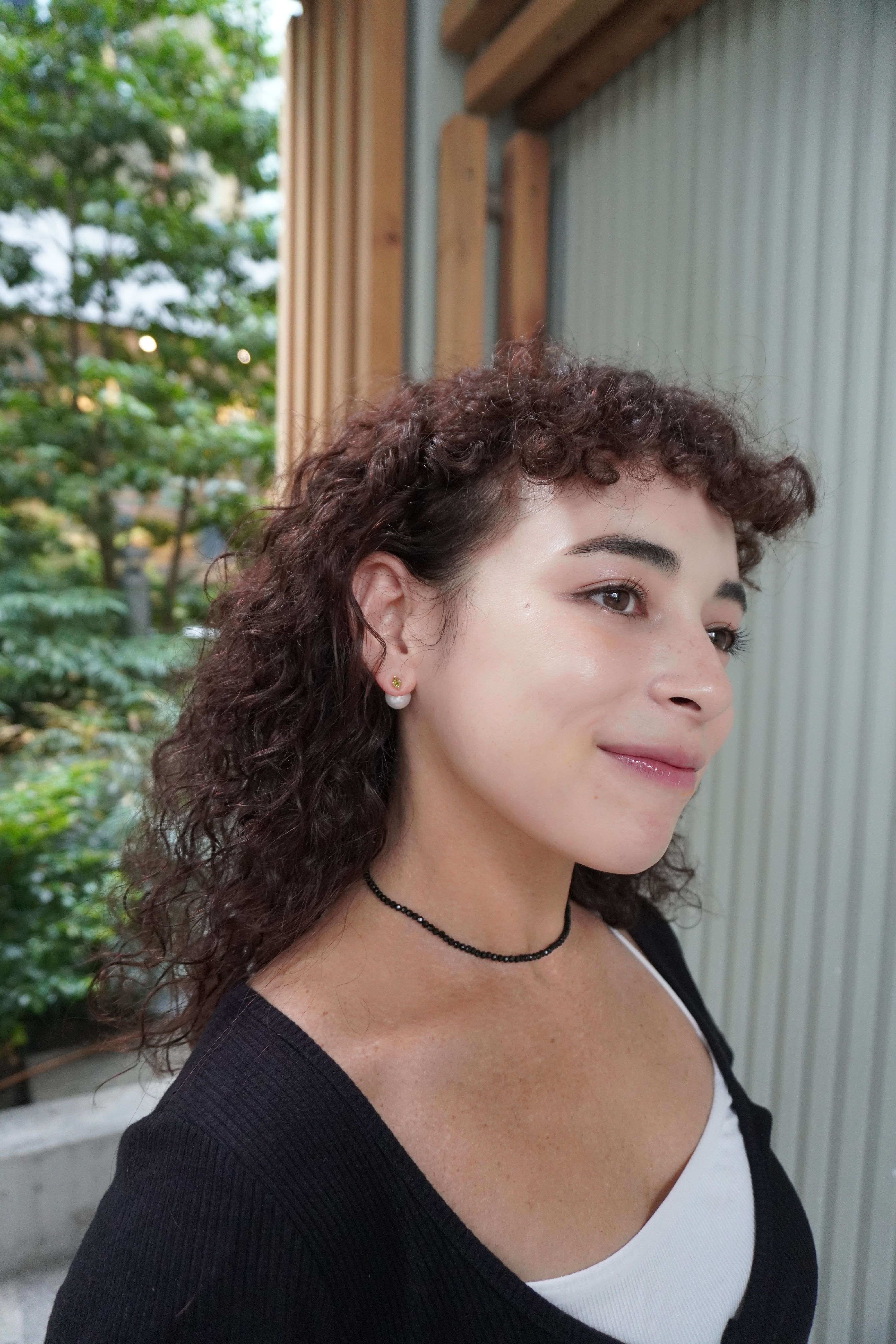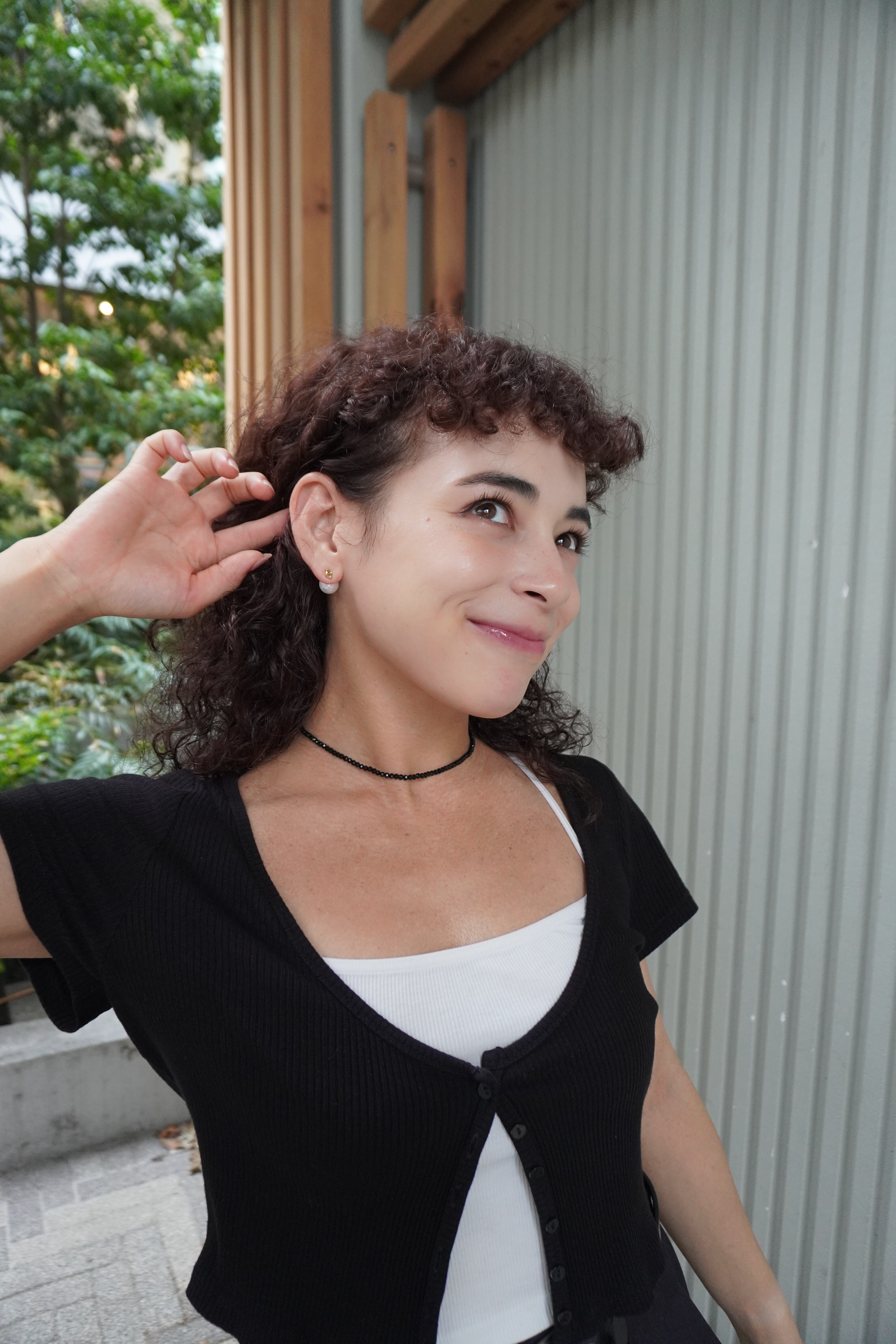 キャッチ部分のパールが正面からも見えるデザインにしておりますので、どの角度から見ても美しいシルエットになります。