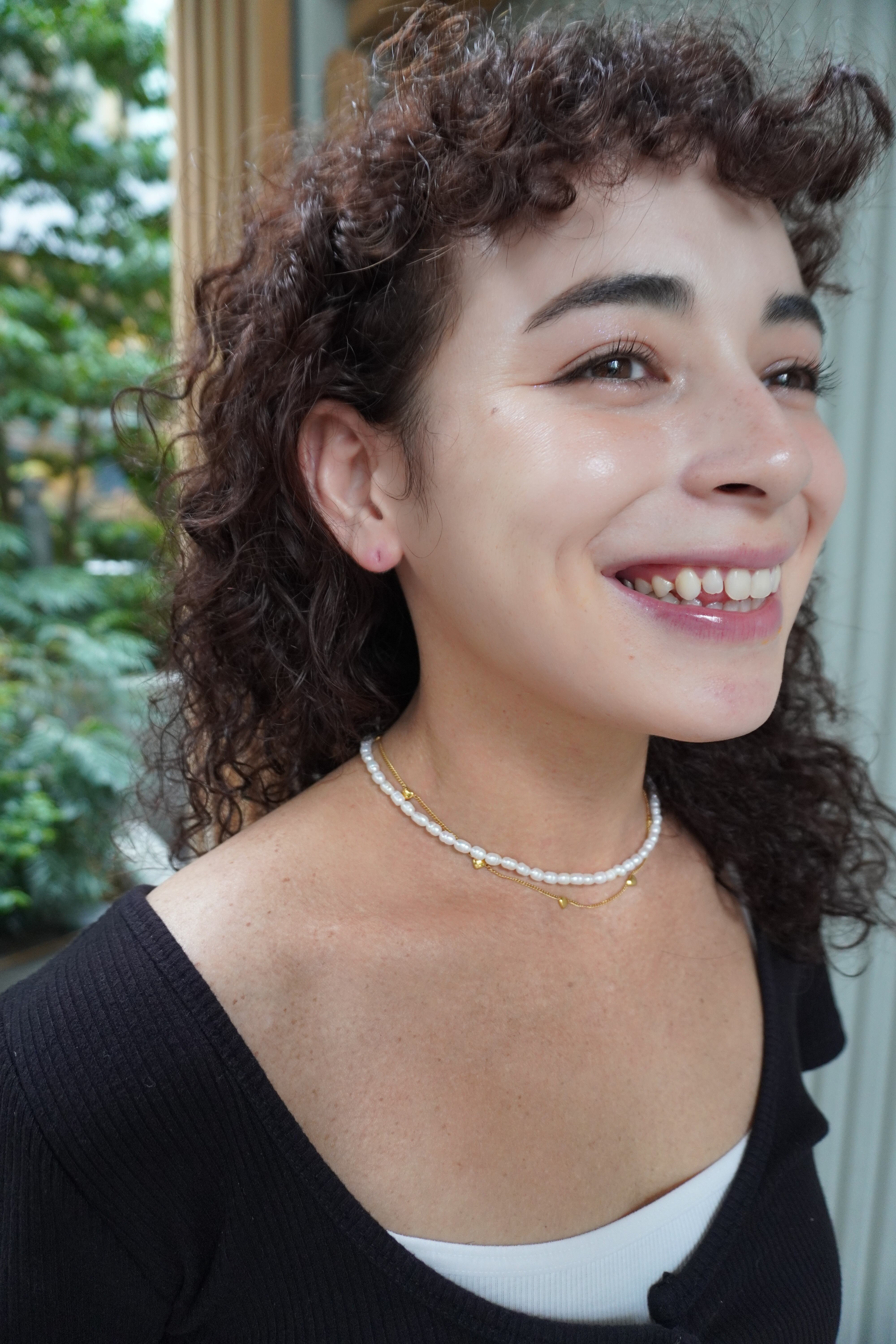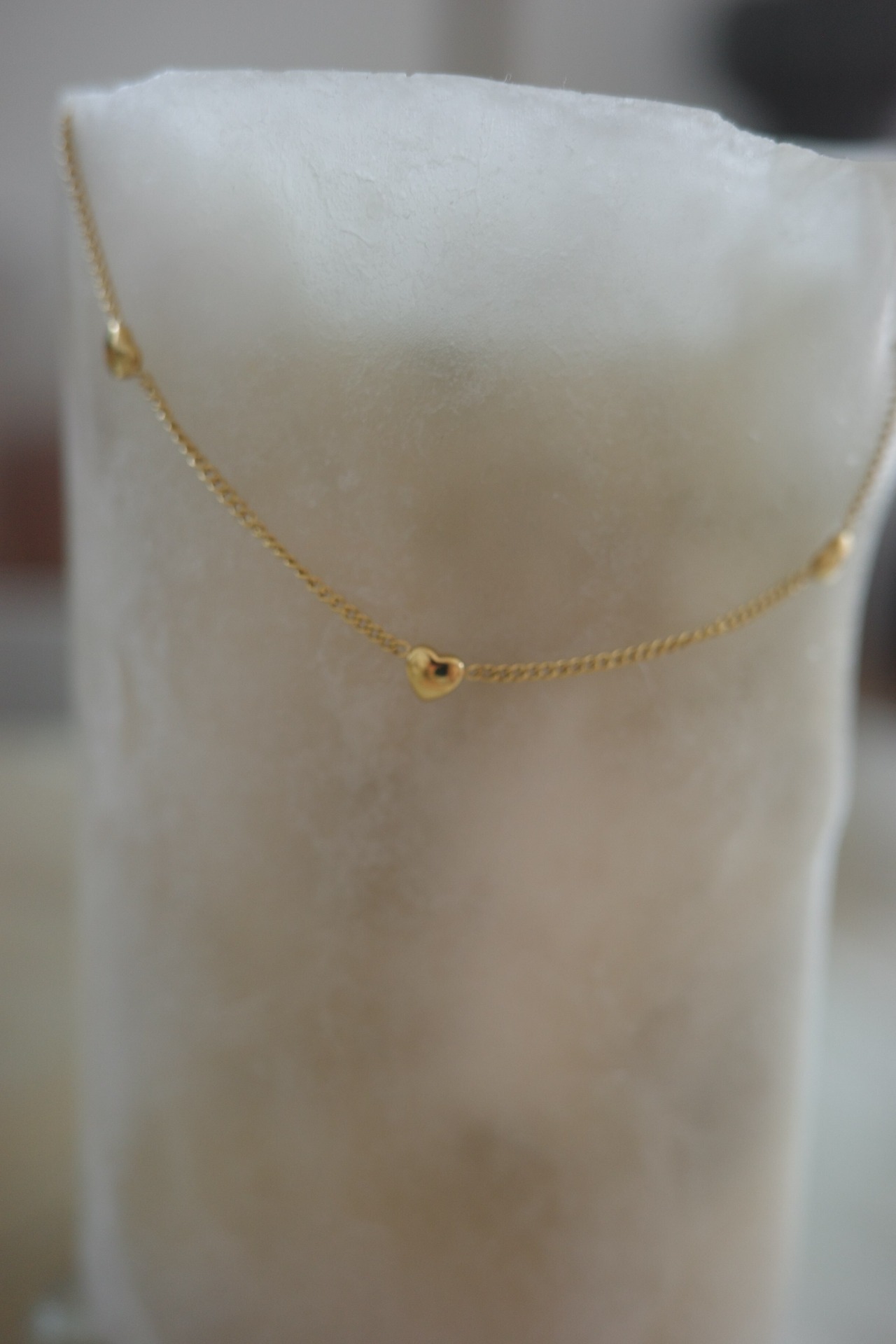 ぷっくりとしたハートモチーフが均等に並べられ、首元に可愛らしさをプラスしてくれるアイテムです。
