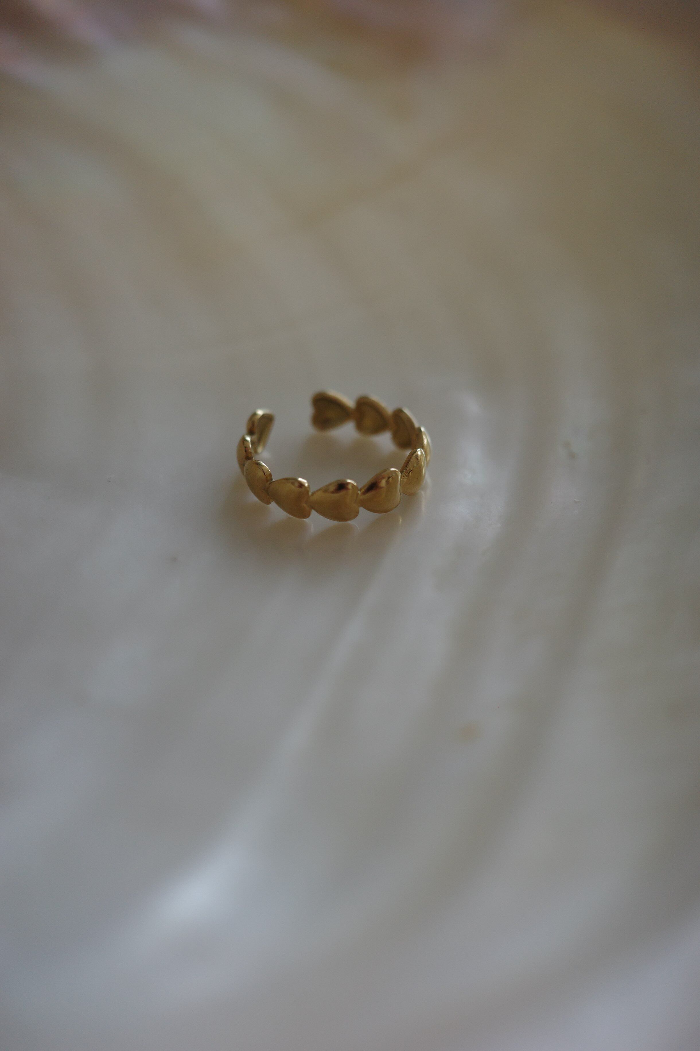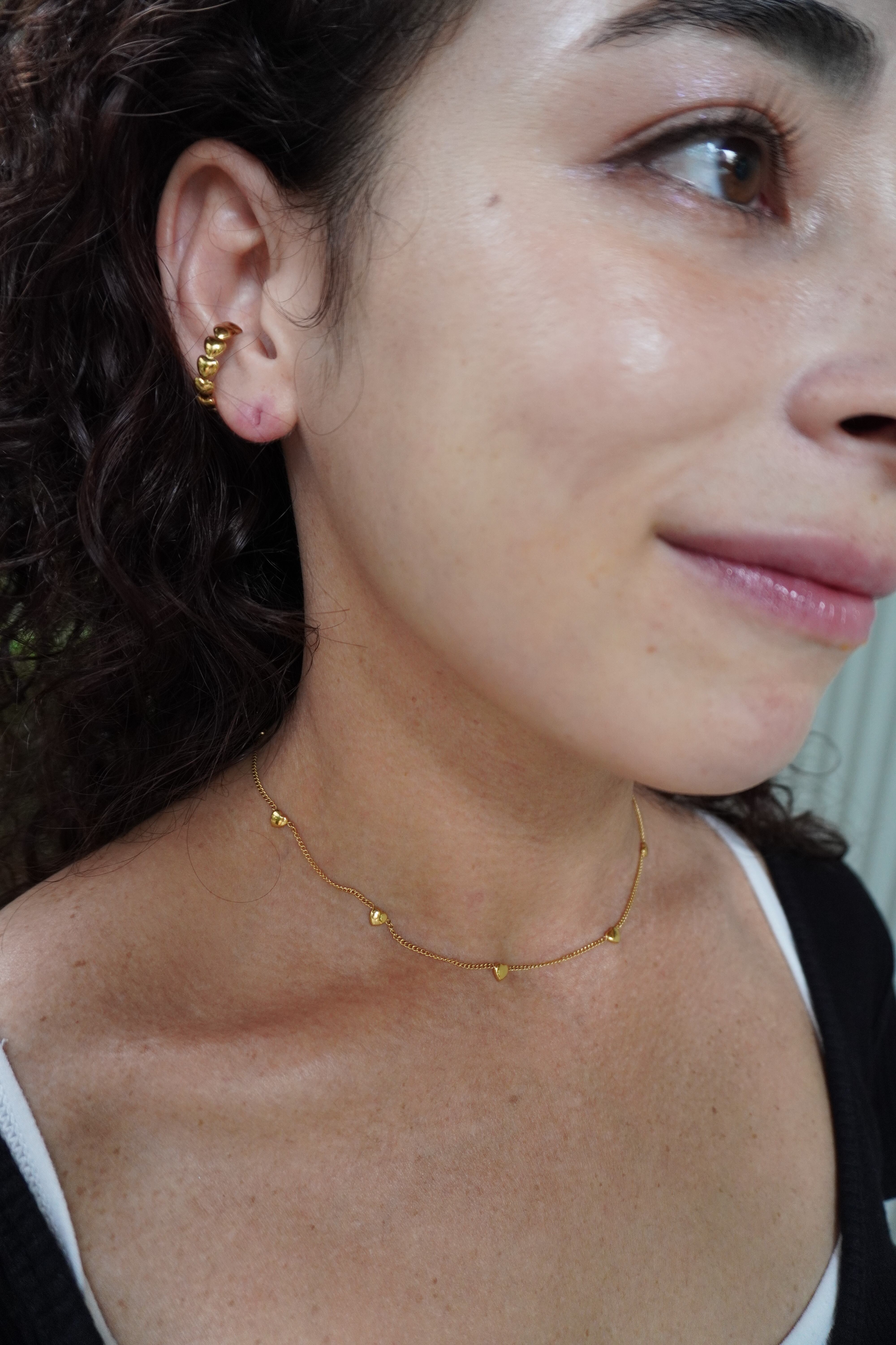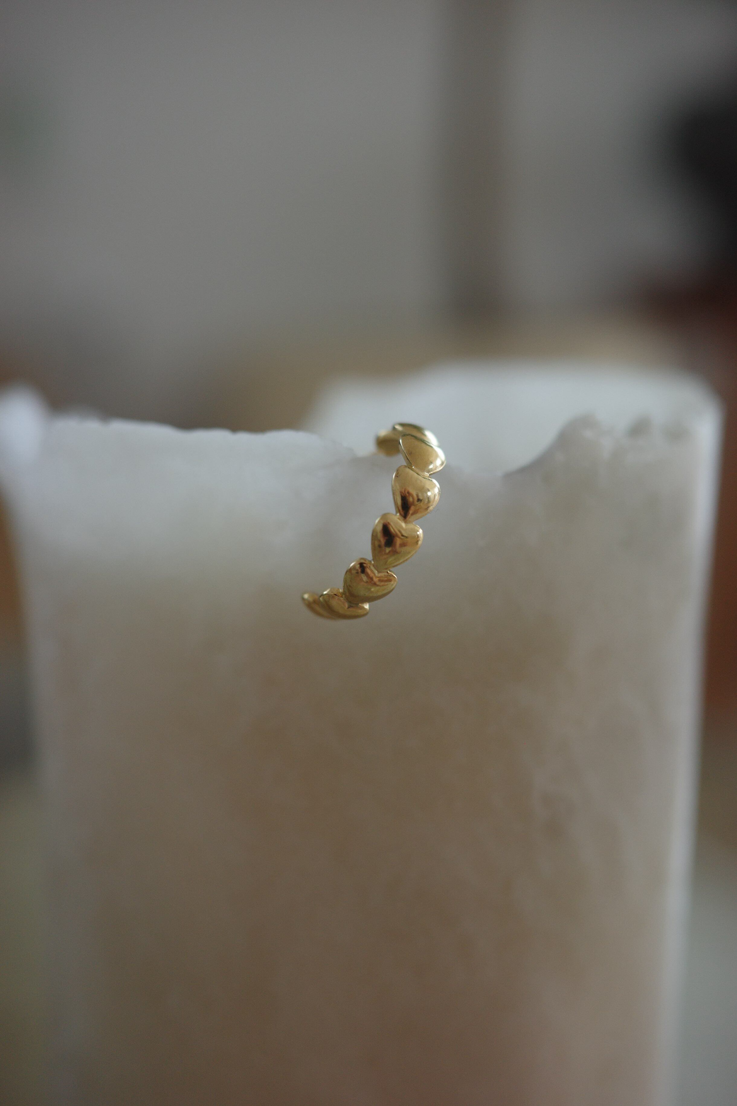 イヤーカフは正面から見るとハートが縦に連なり、キュートさをプラスしてくれます。