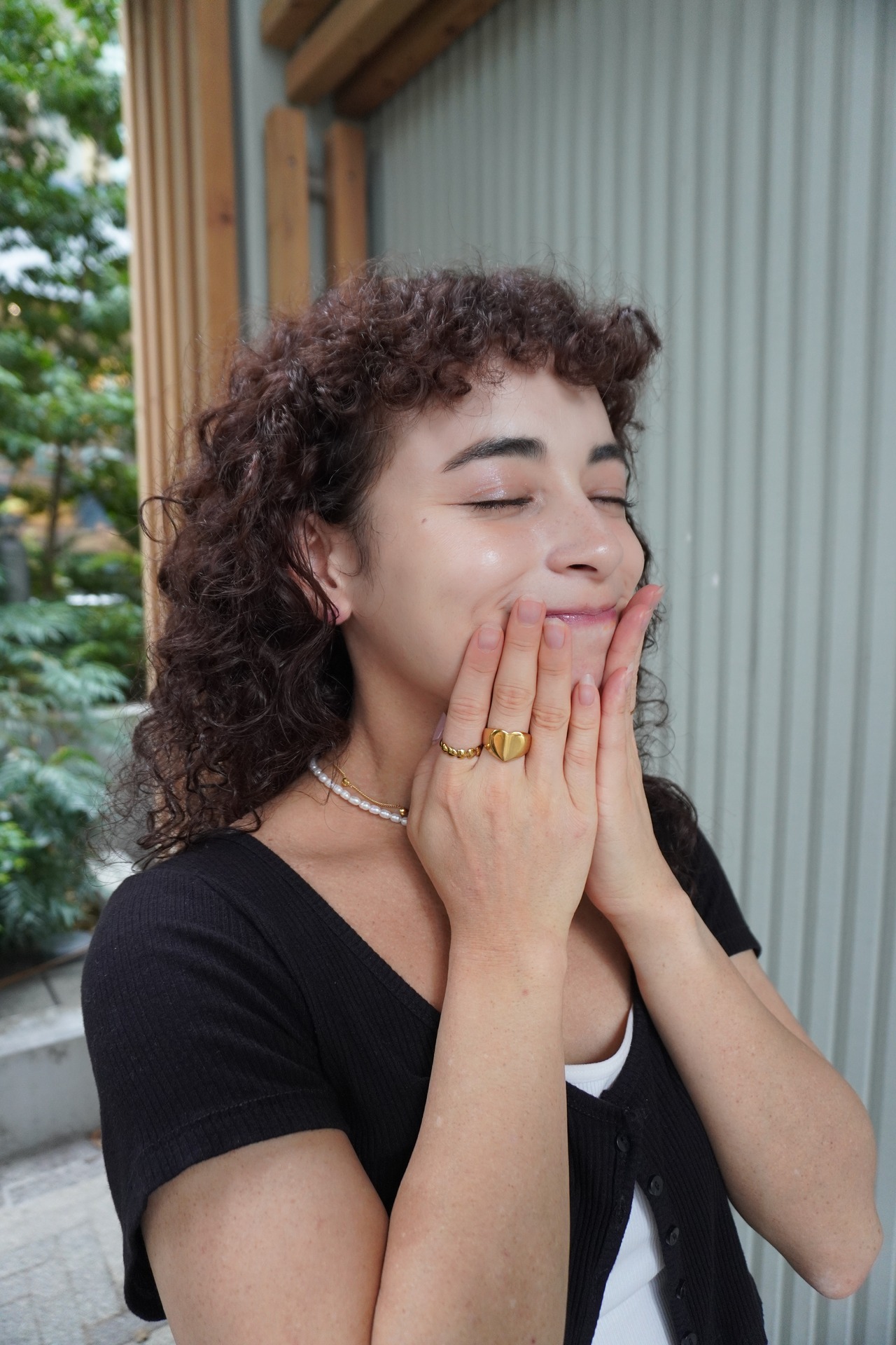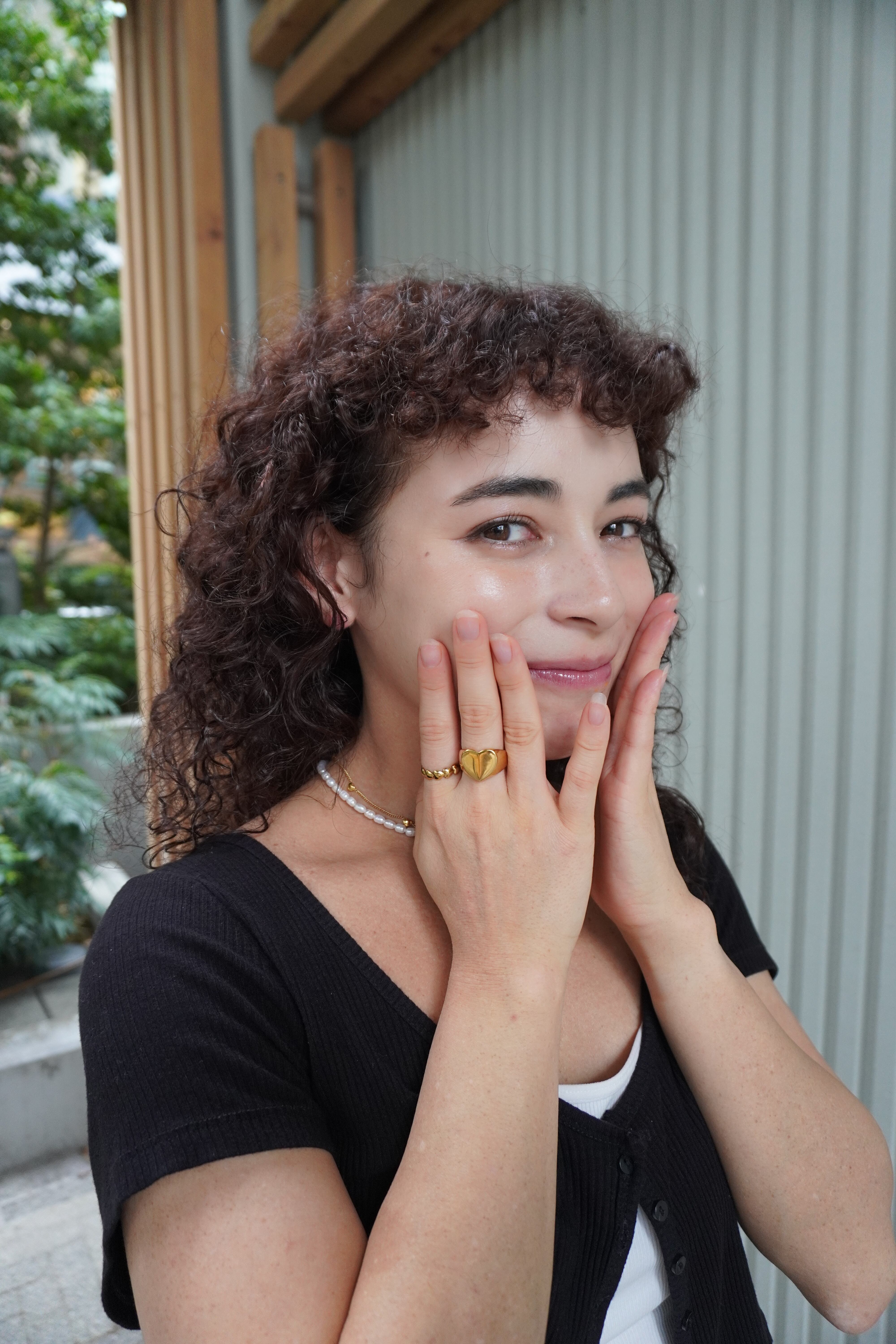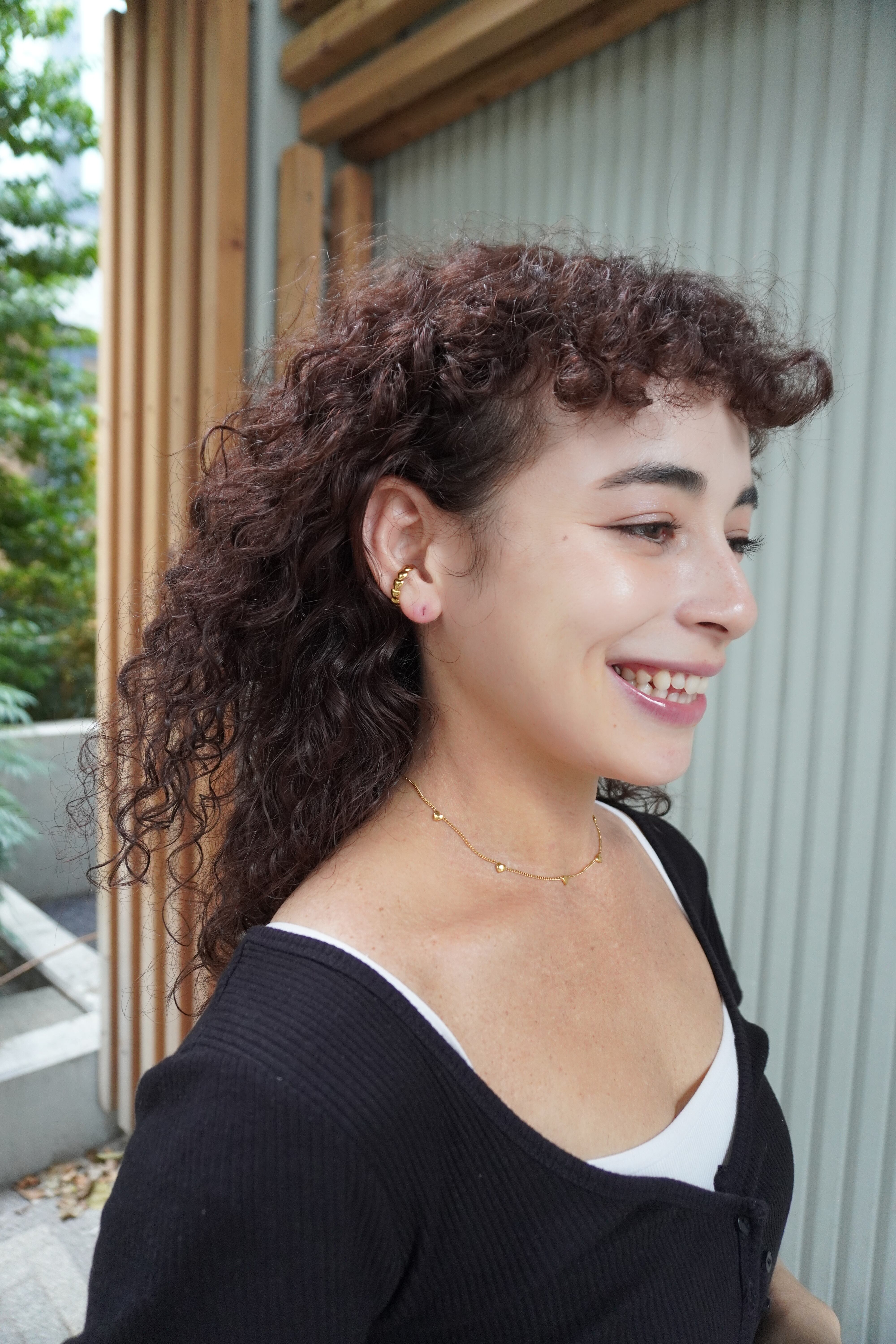イヤーカフは正面から見るとハートが縦に連なり、キュートさをプラスしてくれます。