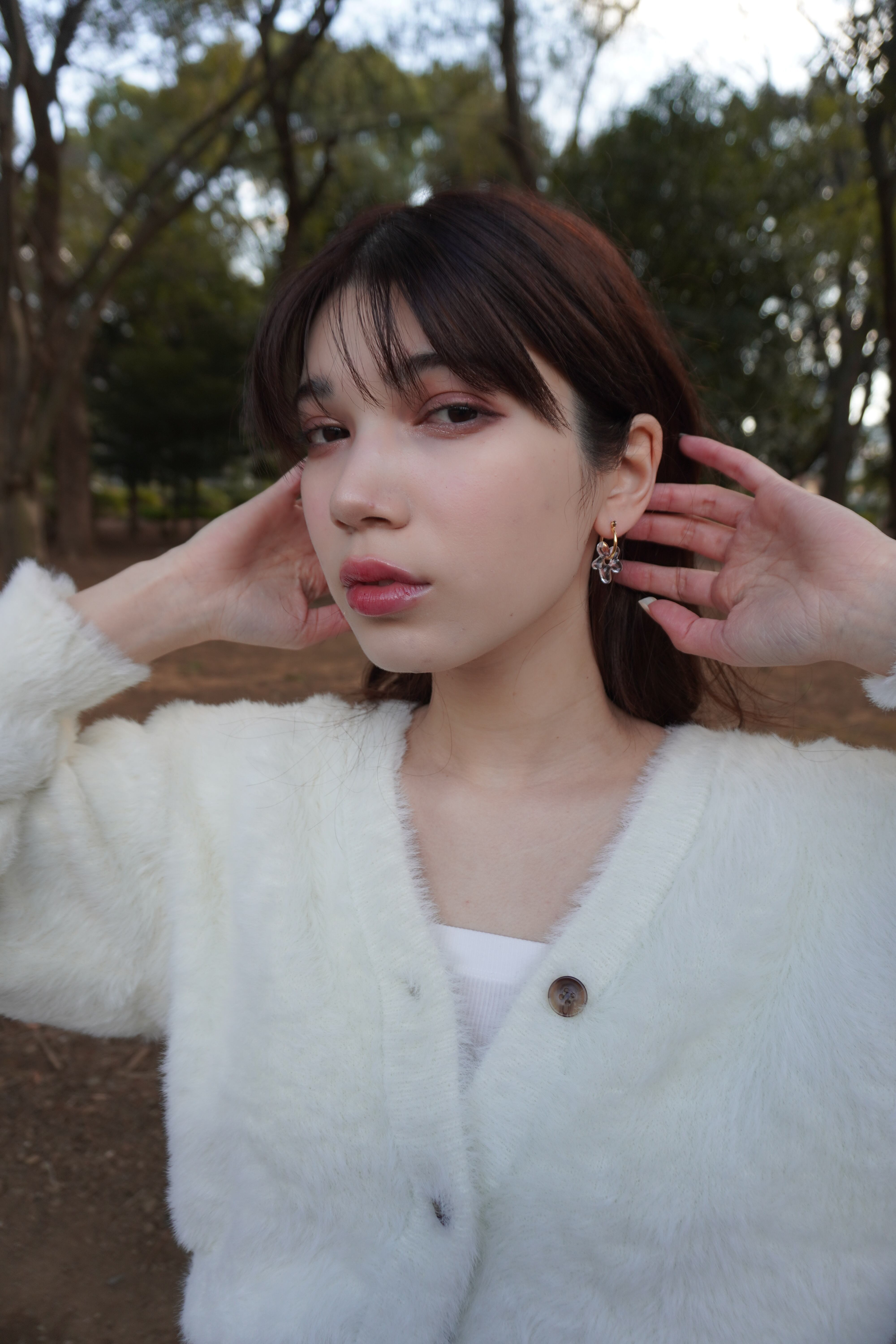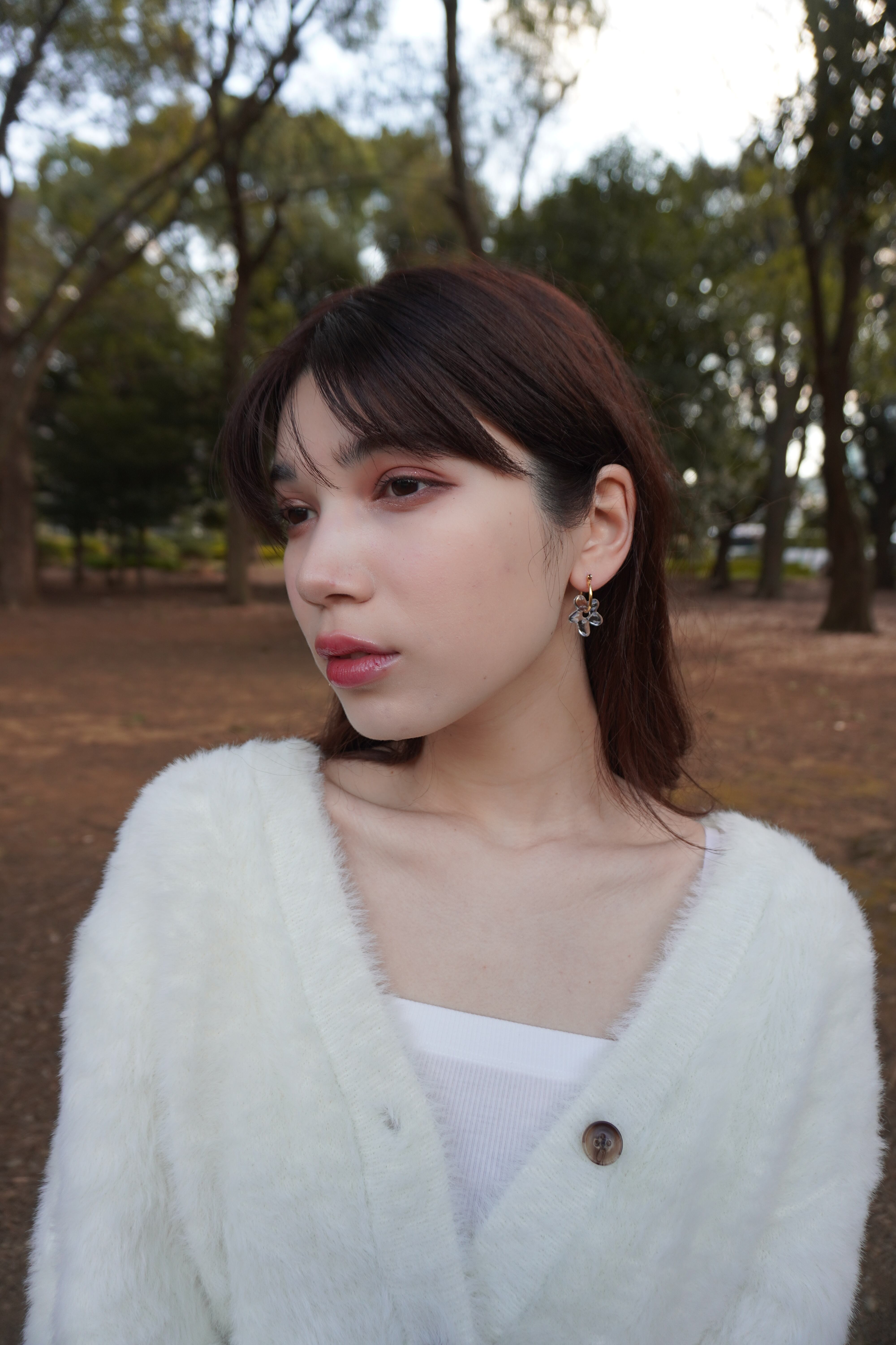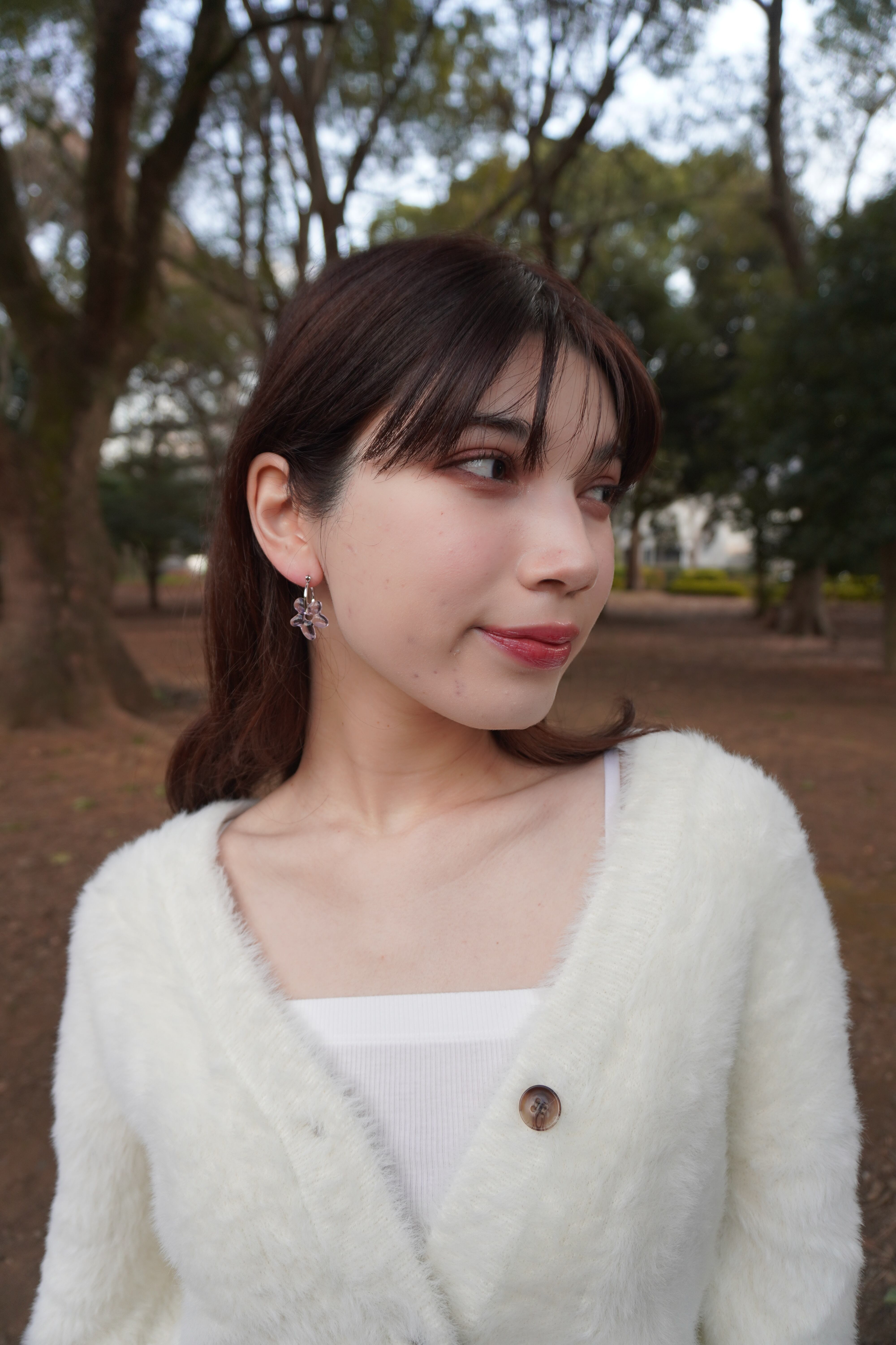 どんなコーデとも合わせやすく、お花のパーツは取り外し可能ですので、フープ部分のみでもご着用が可能です。