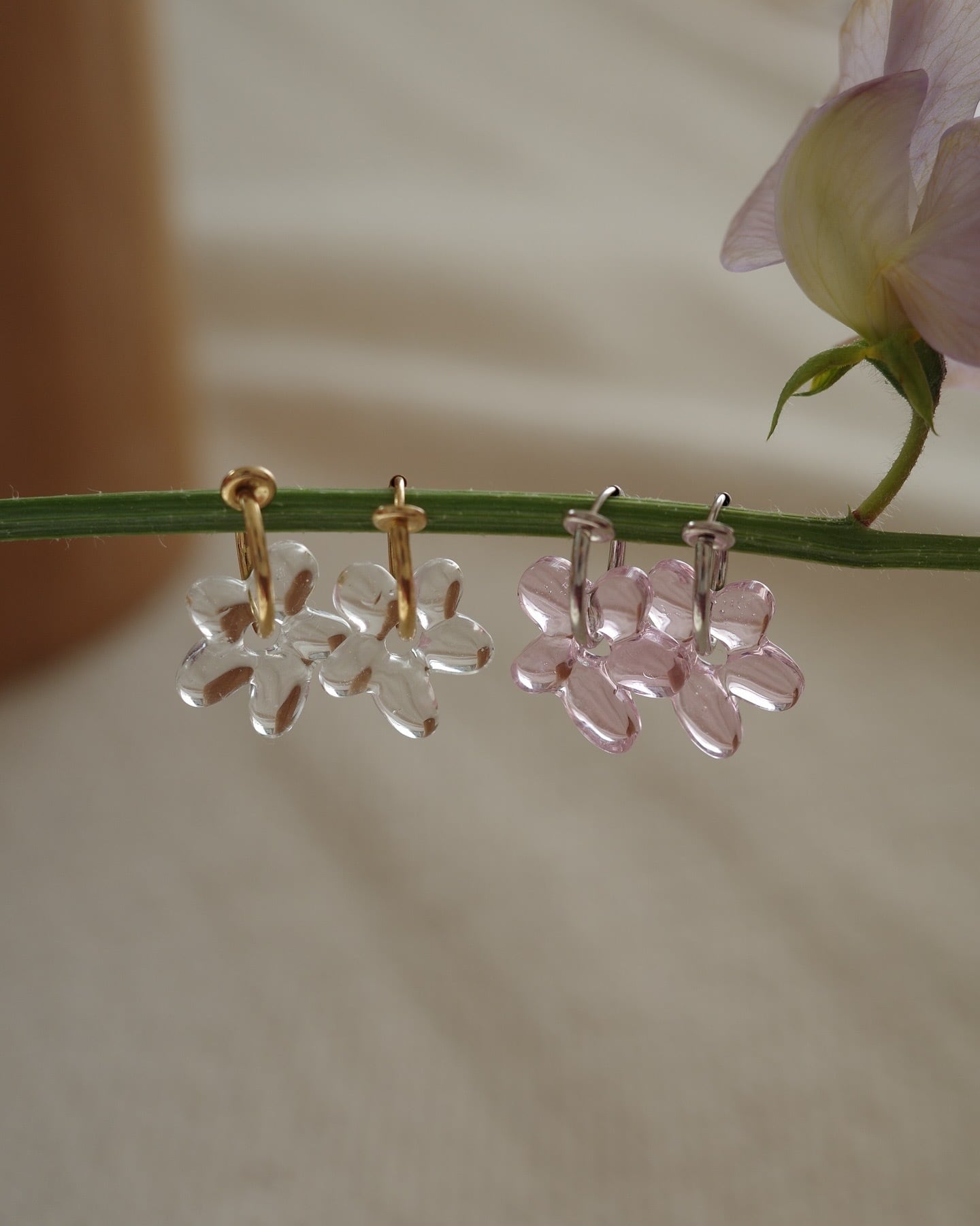 一つひとつ丁寧に手作りされたお花のガラスパーツは唯一無二の存在感で、彩りをプラスしてくれます。