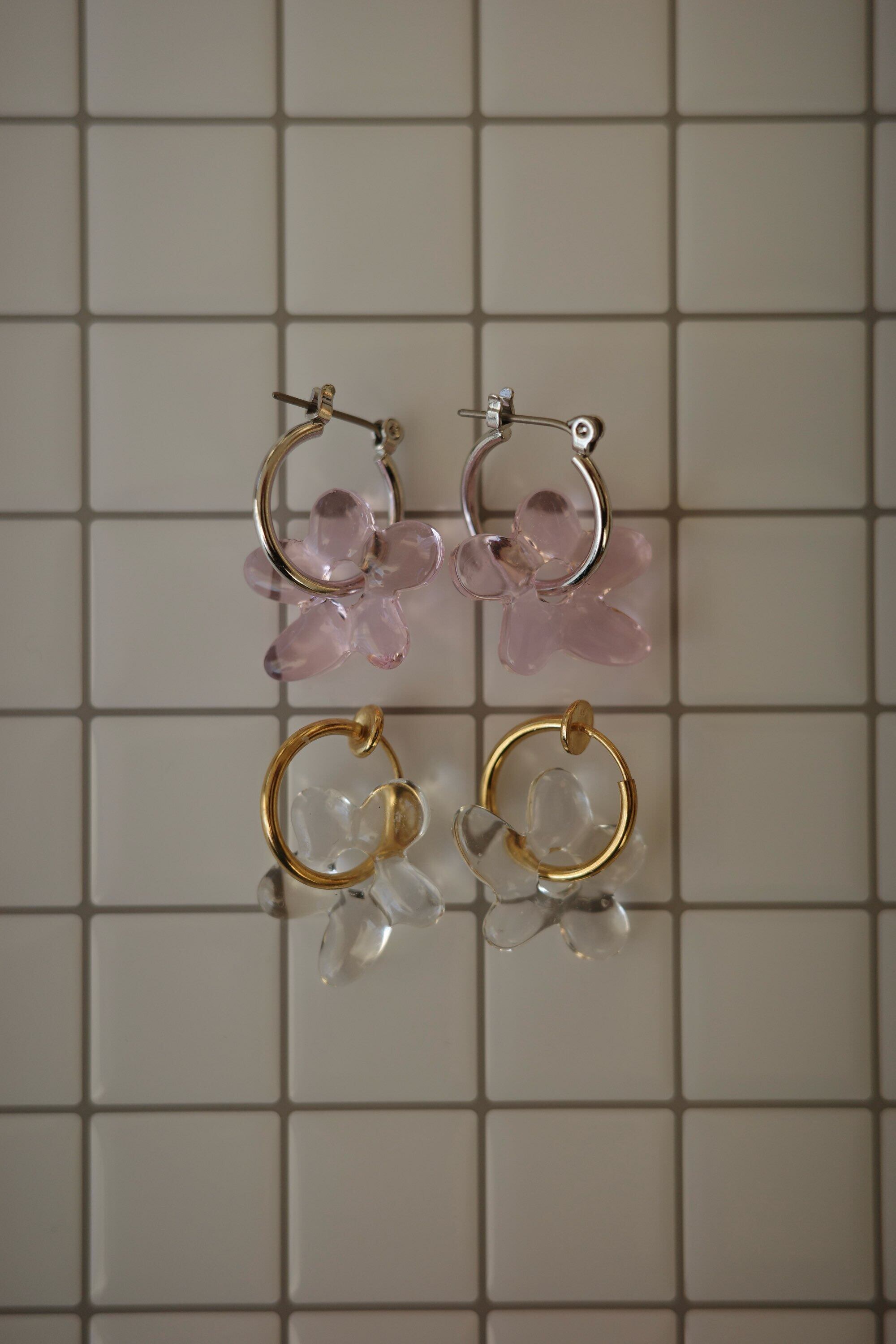 ガラスでできたお花のパーツを使ったアクセサリー。