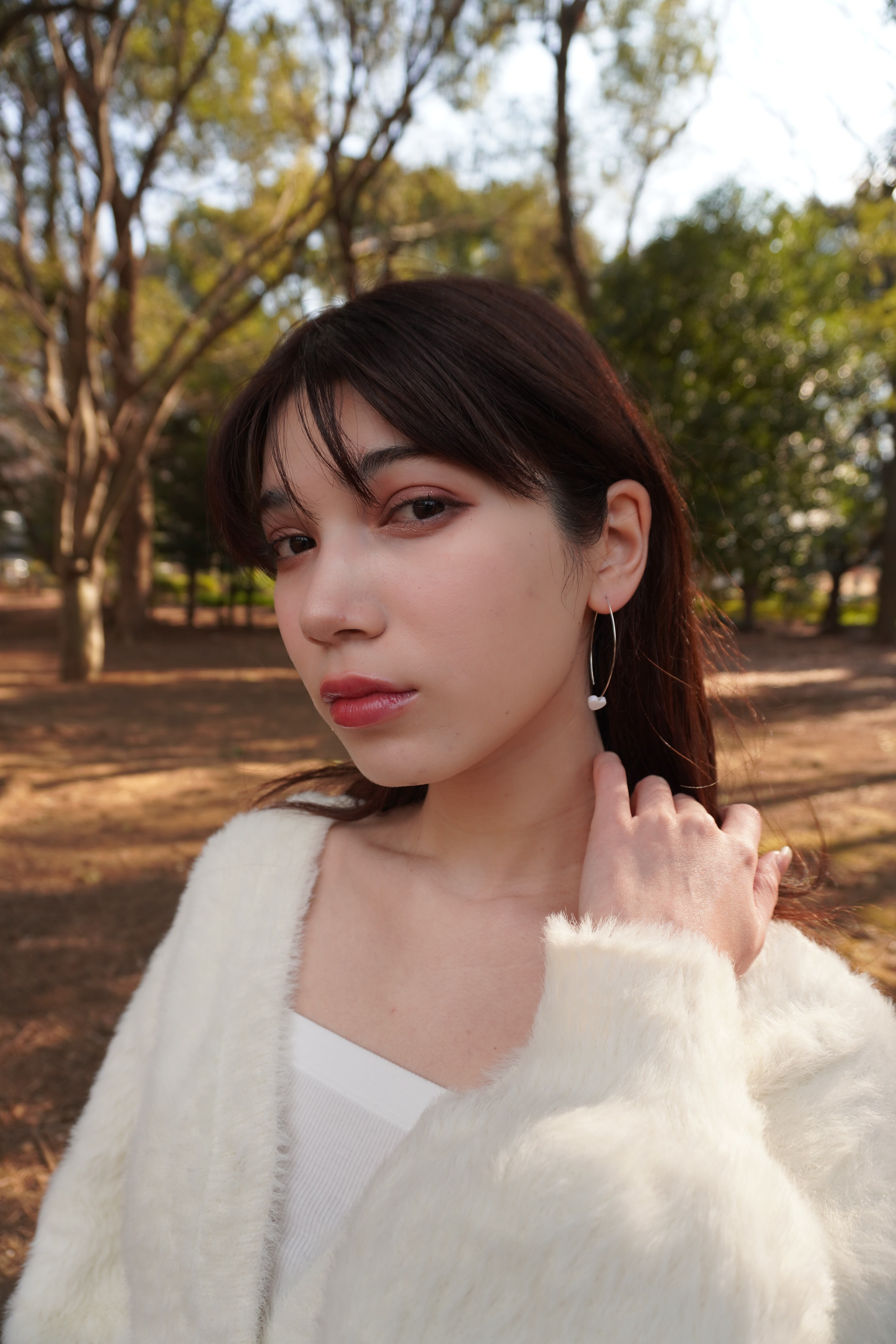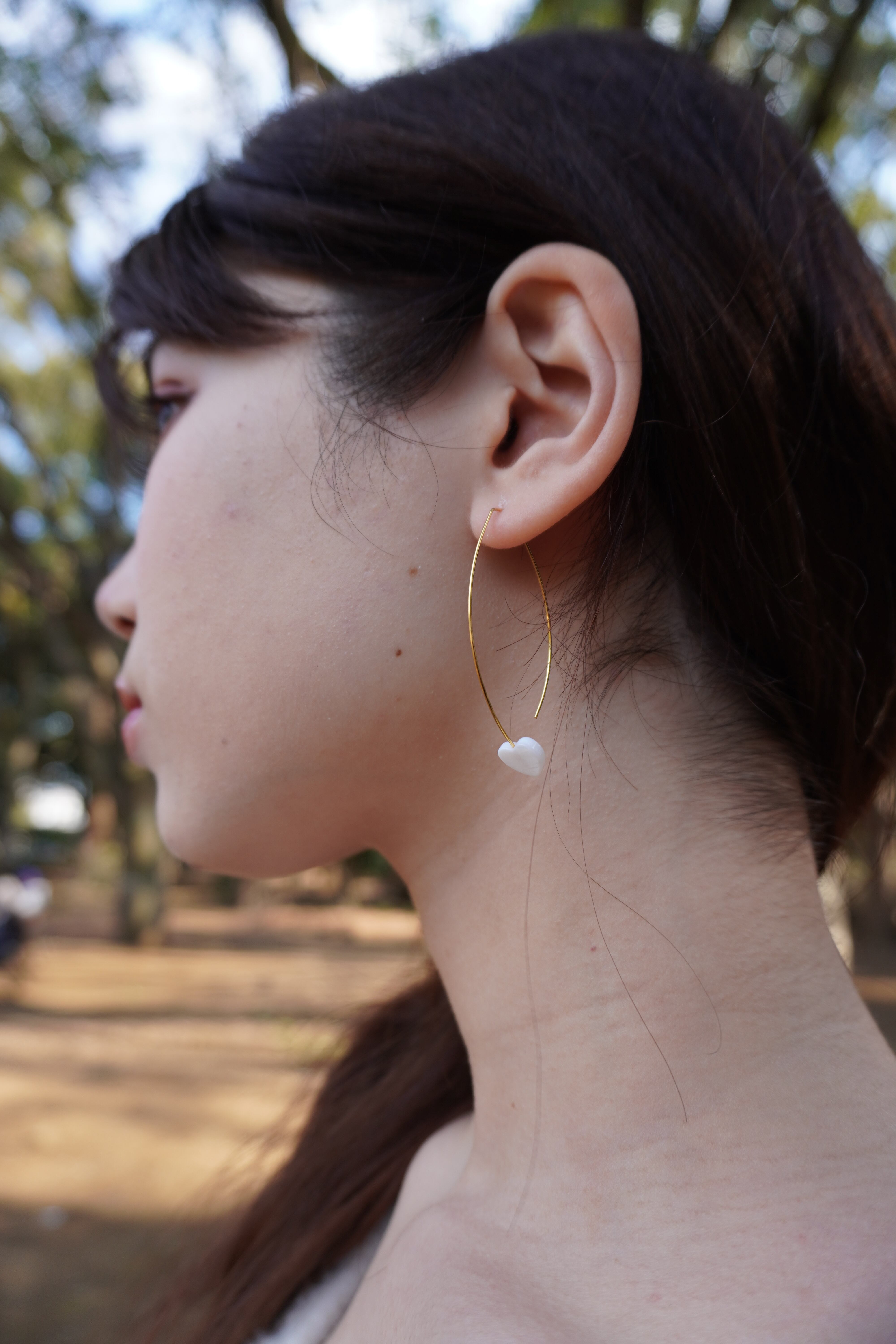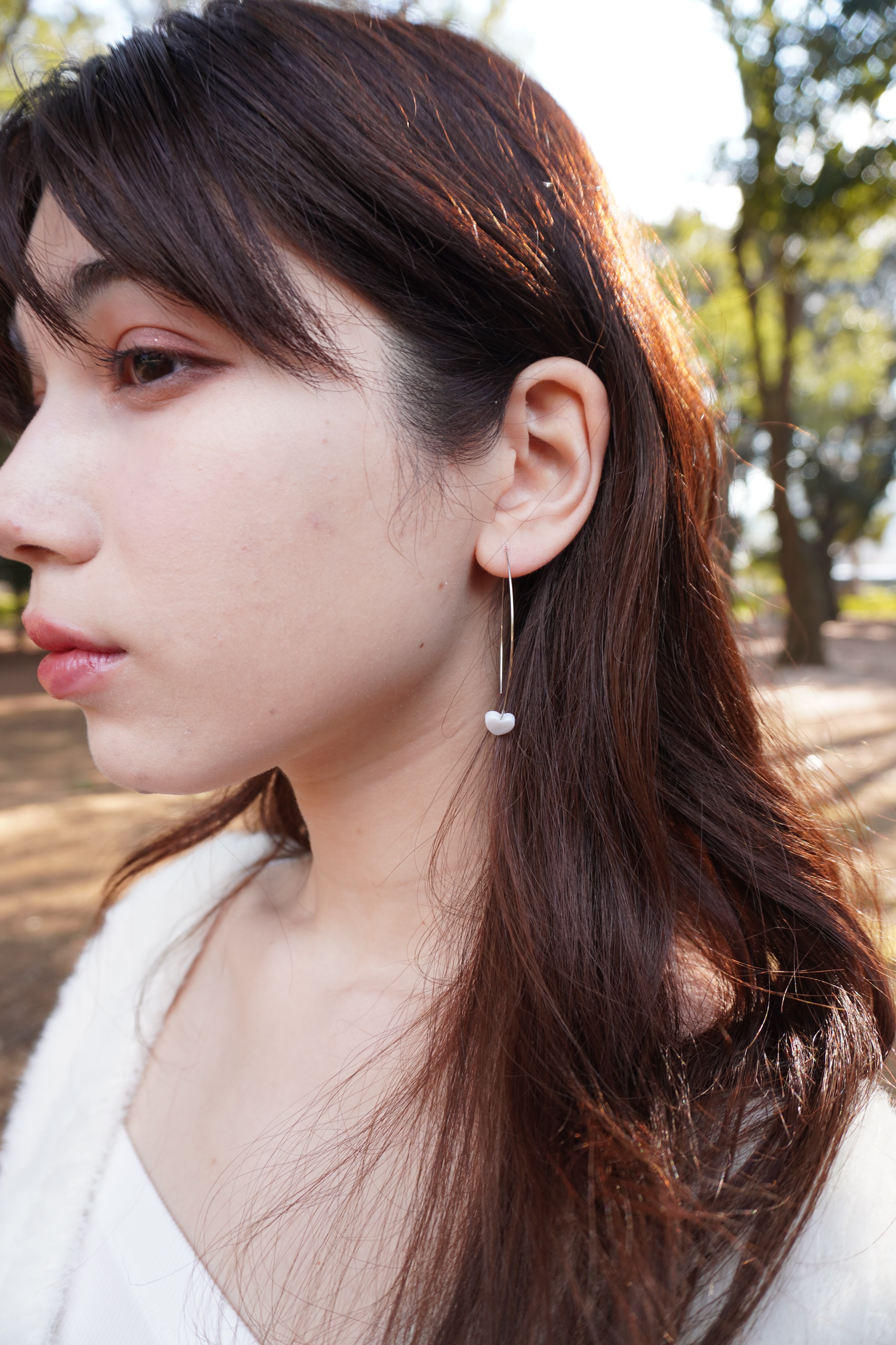 華奢なワイヤーの先にぽつんとシェルハートがアクセントになり、ユニークなシルエットに仕上げました。