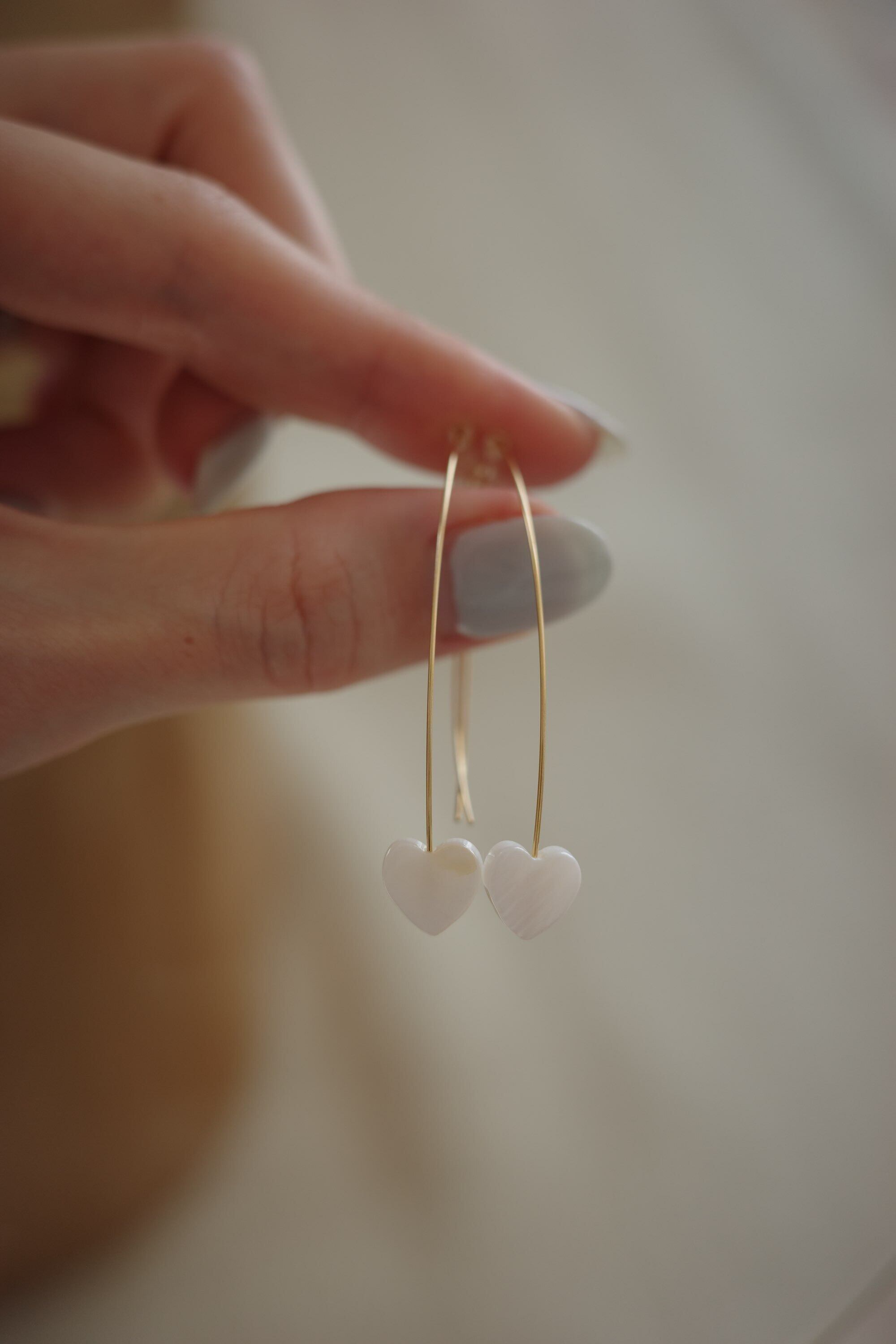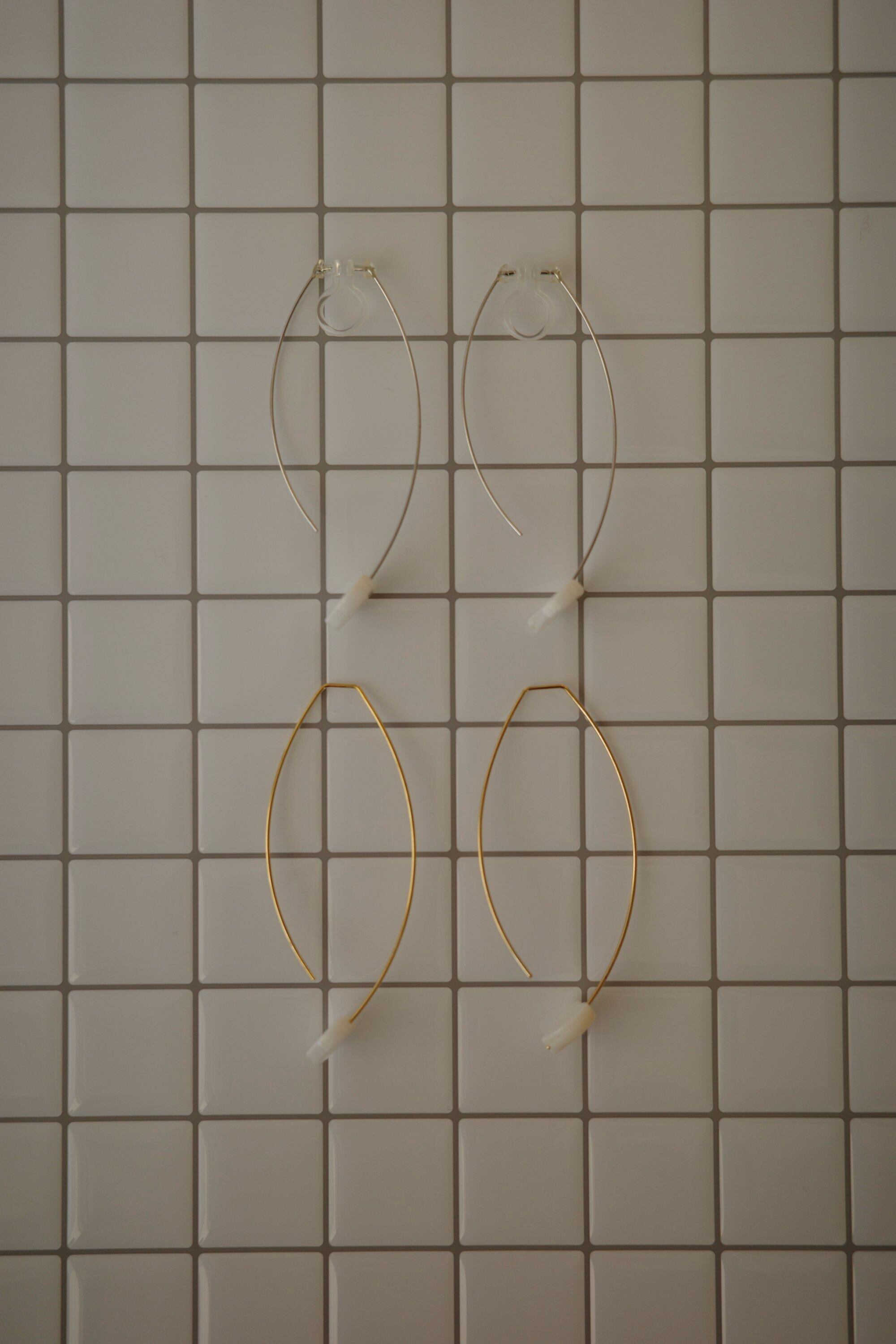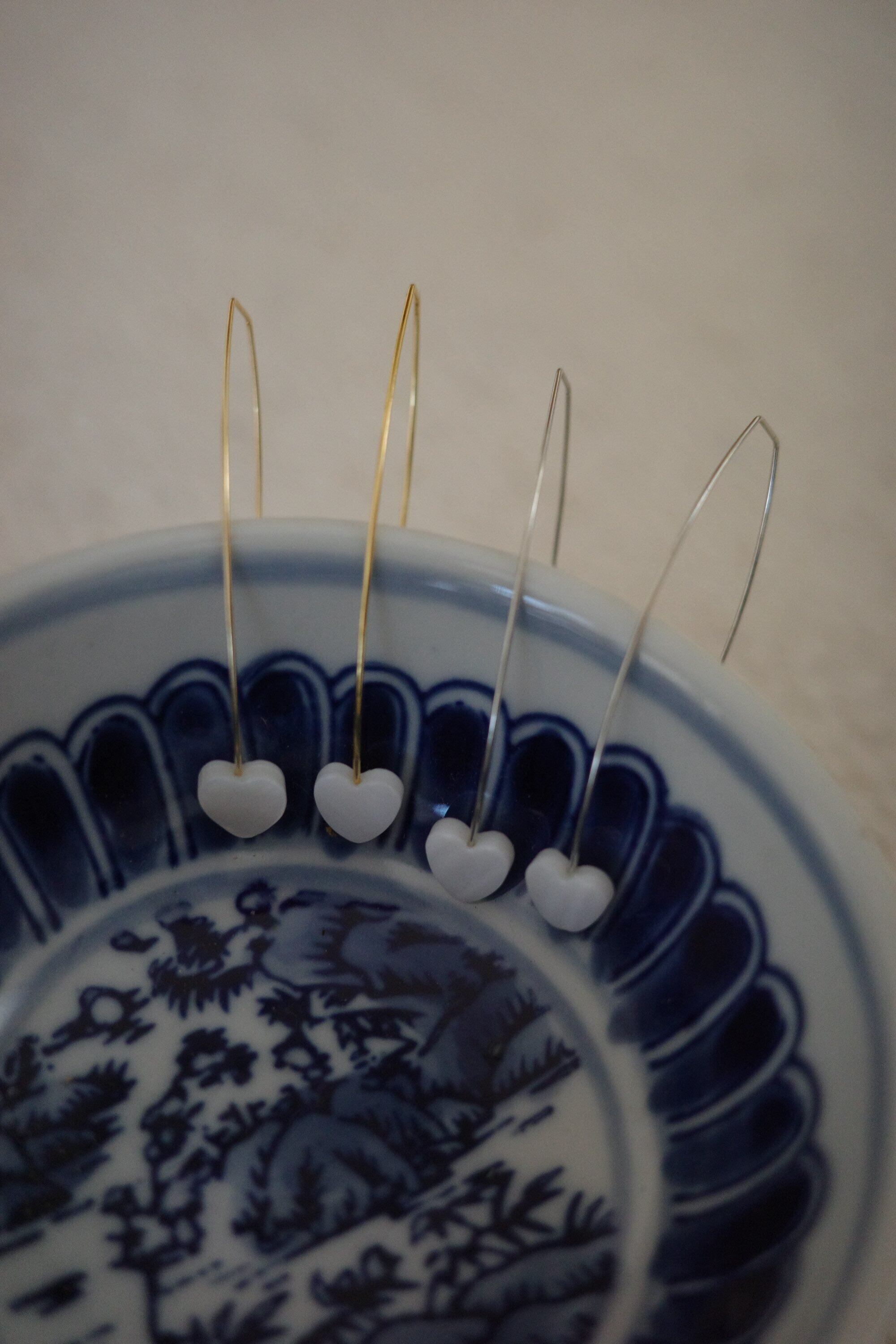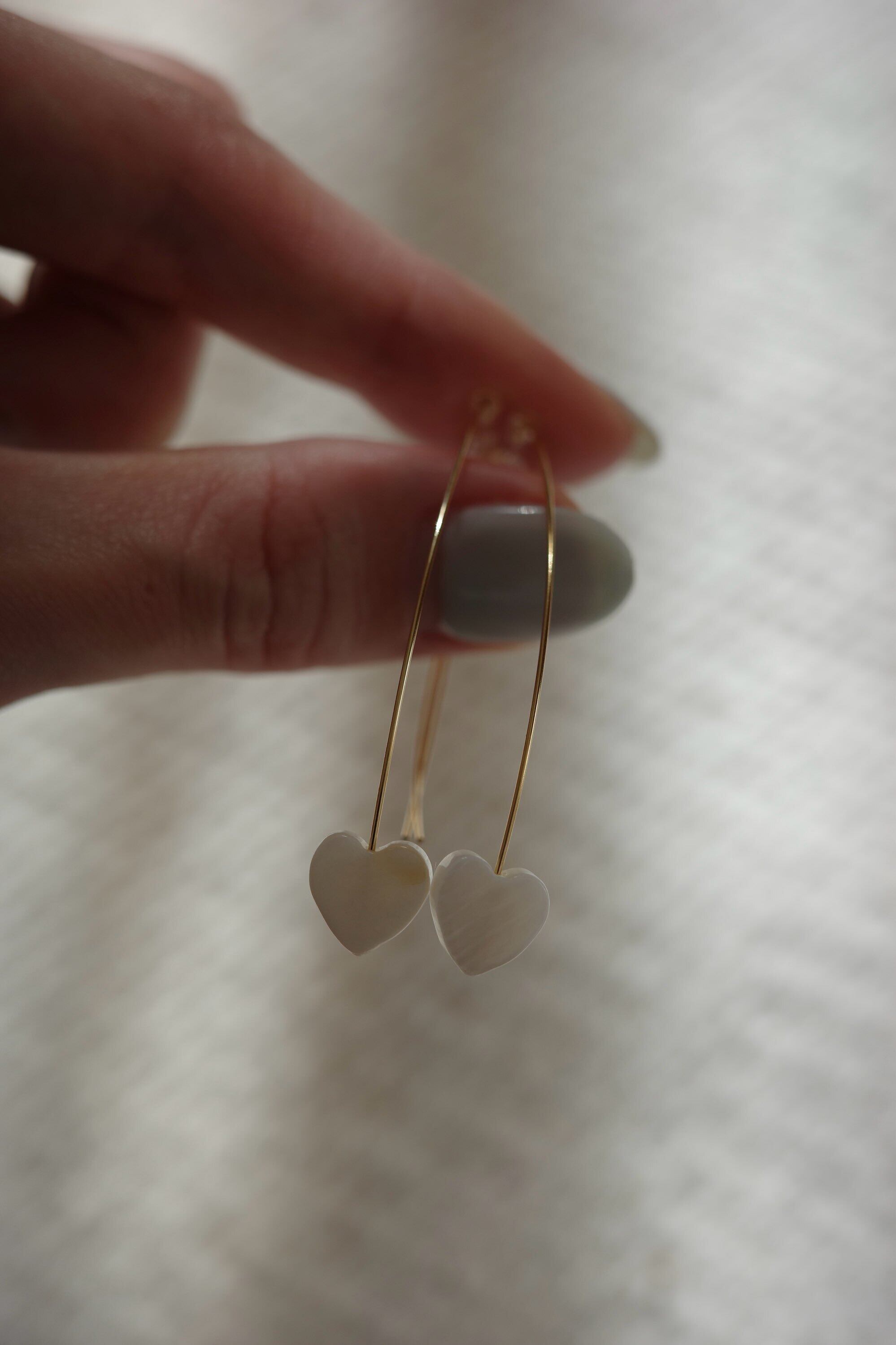 華奢なワイヤーの先にぽつんとシェルハートがアクセントになり、ユニークなシルエットに仕上げました。