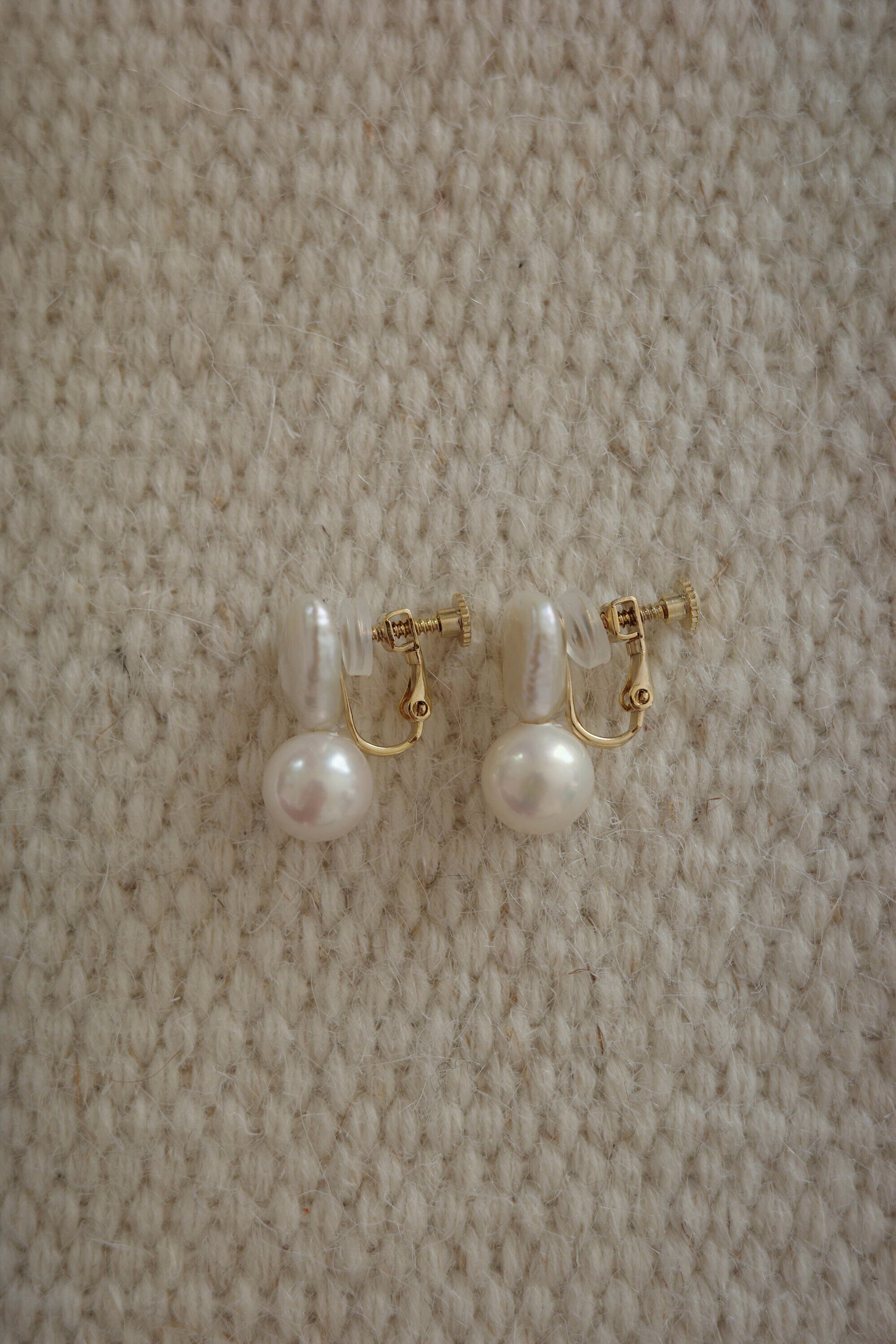 イヤリング: 淡水パール、樹脂、真鍮(ニッケルフリー)